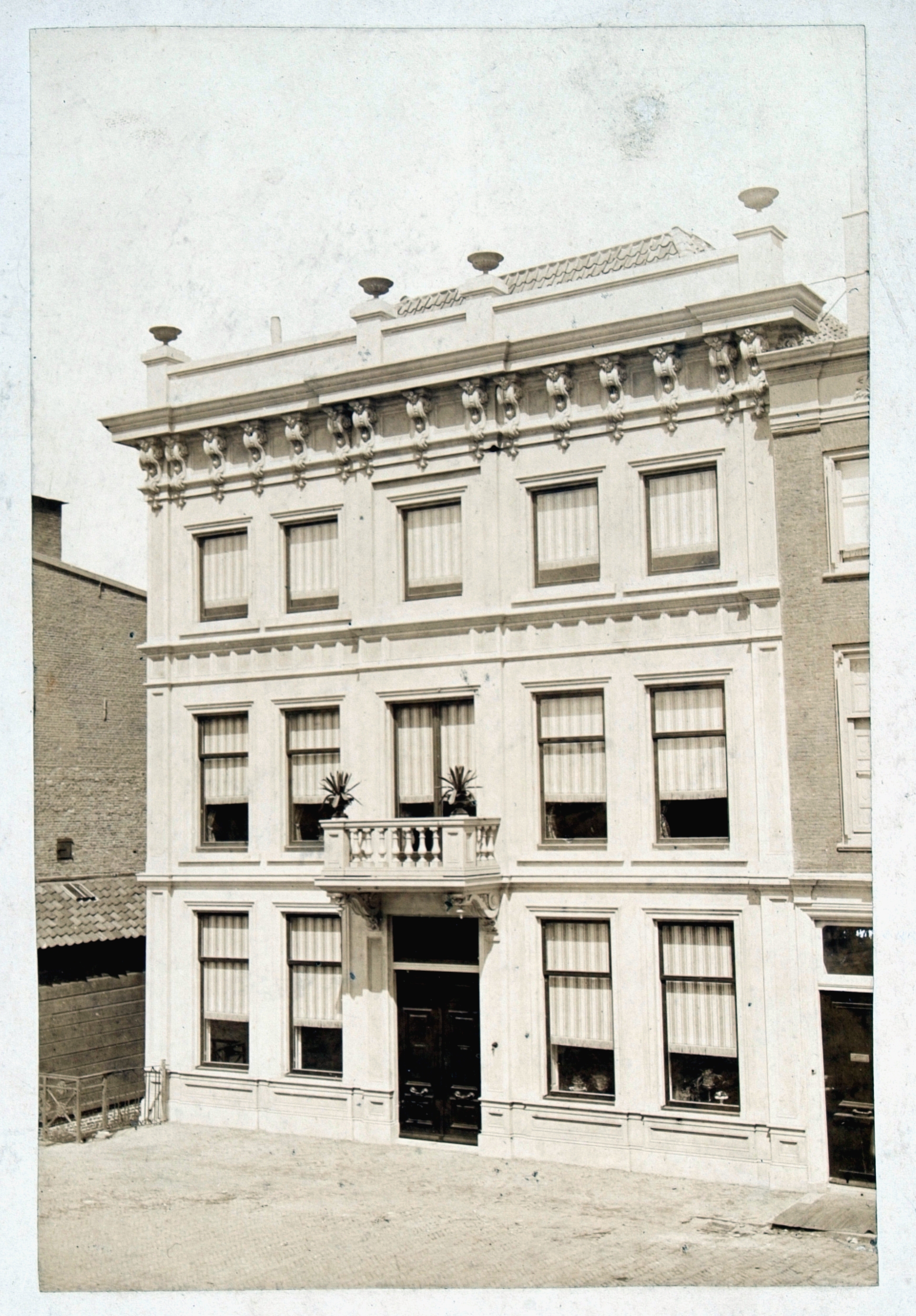 - Gevel van huis aan het Steegoversloot op de hoek van de latere Schoolstraat ca 1875
