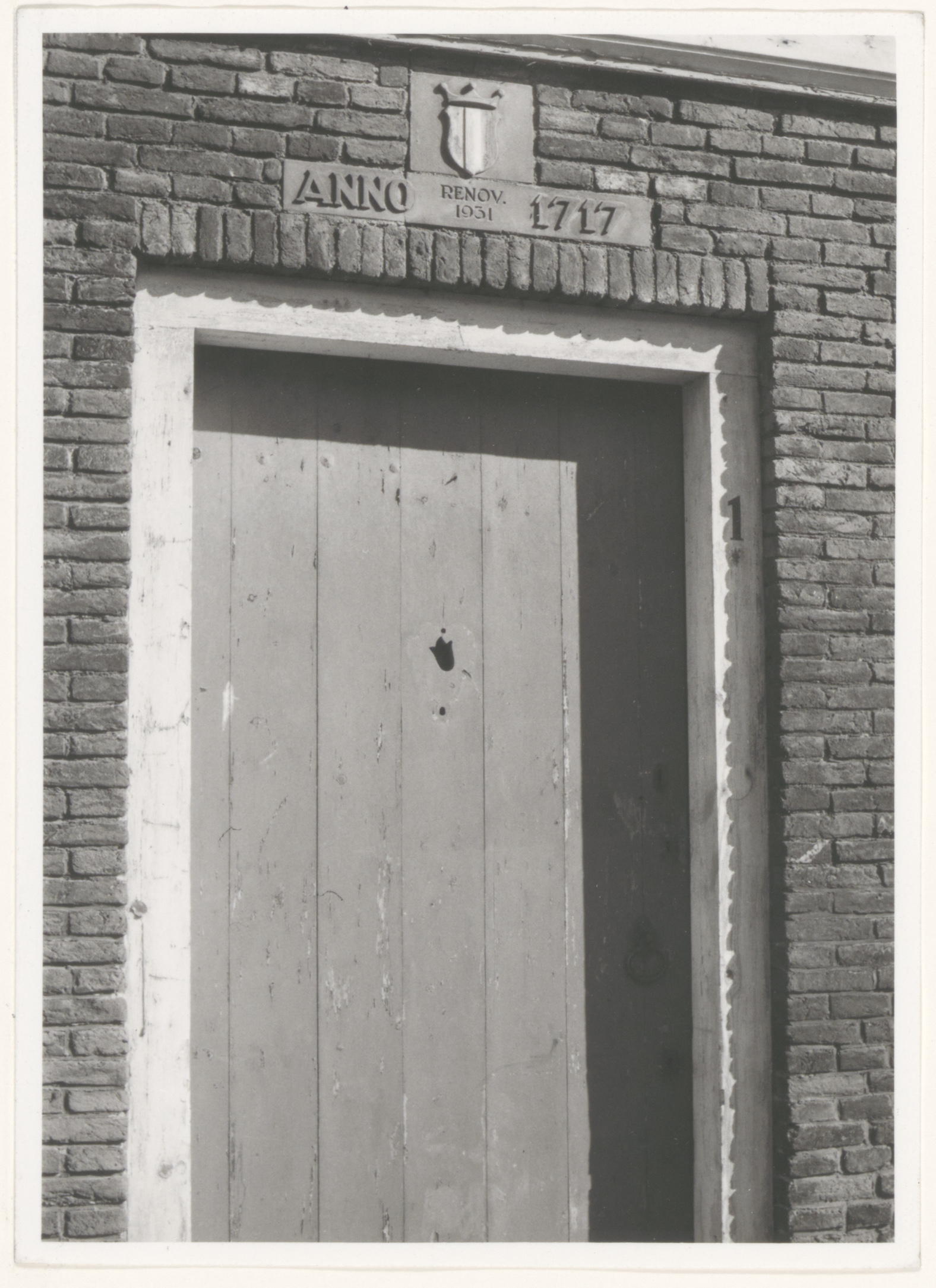 Gevelsteen met de tekst 'anno 1717/renov. 1931' op het korenmetershuisje aan de …