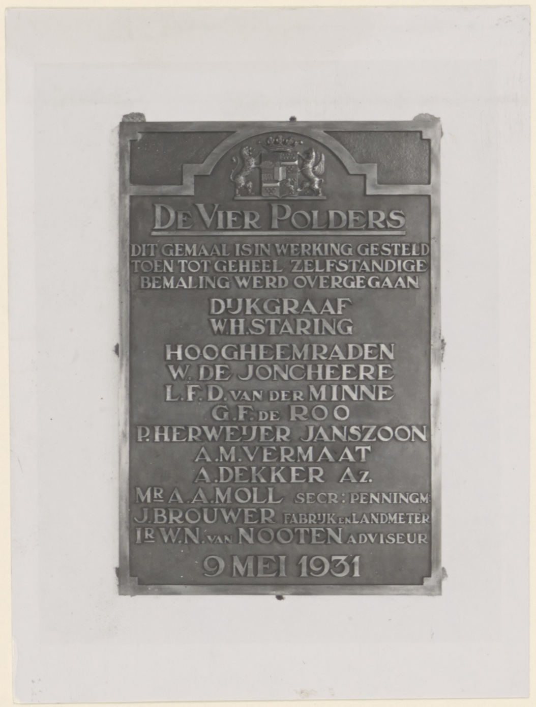 Gedenkplaat in het motorgemaal W.H. Staring bij de Kop van 't Land.