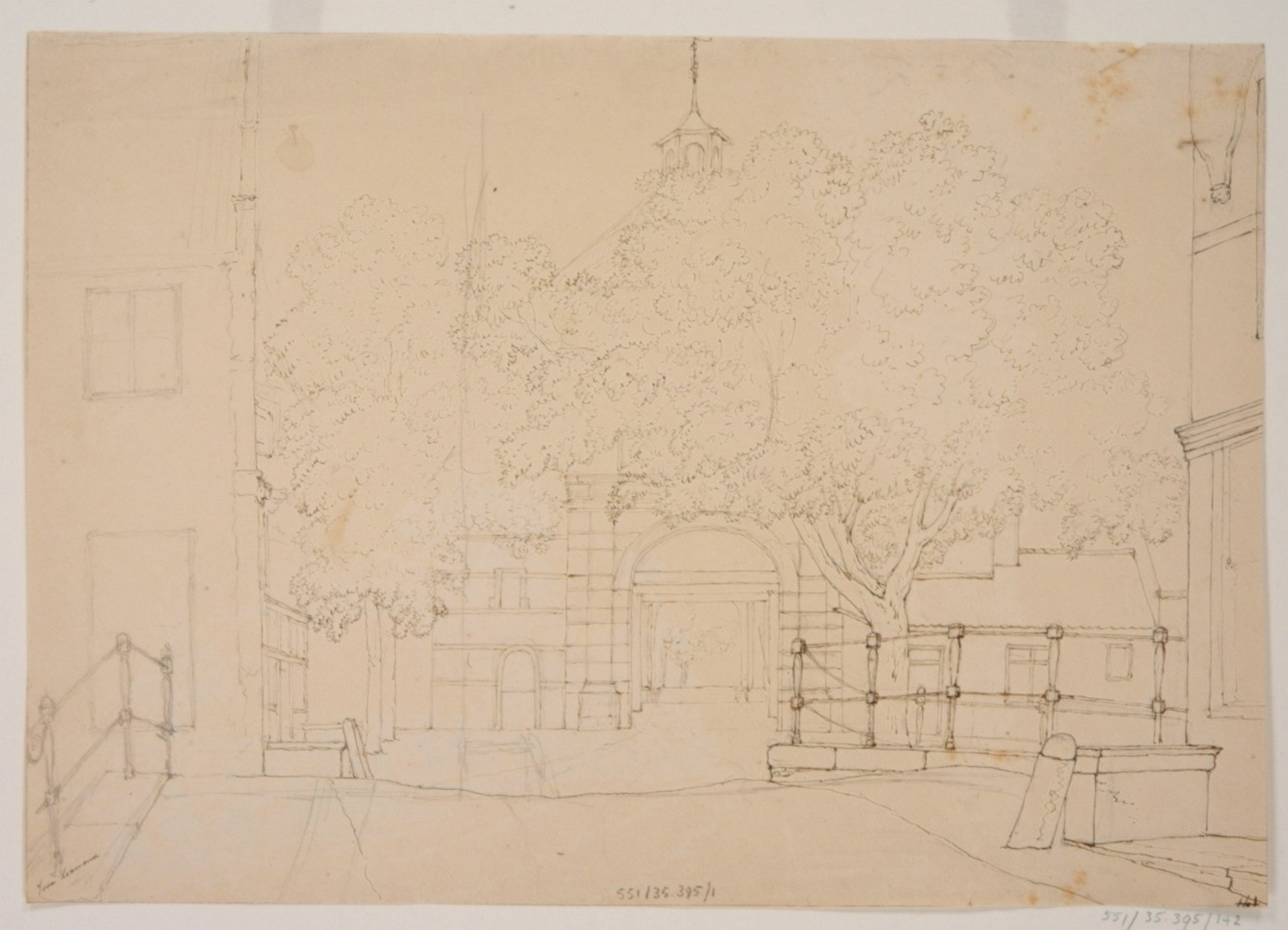 - Spuipoort gezien over de brug over de Binnengracht vanuit de Grote Spuistraat