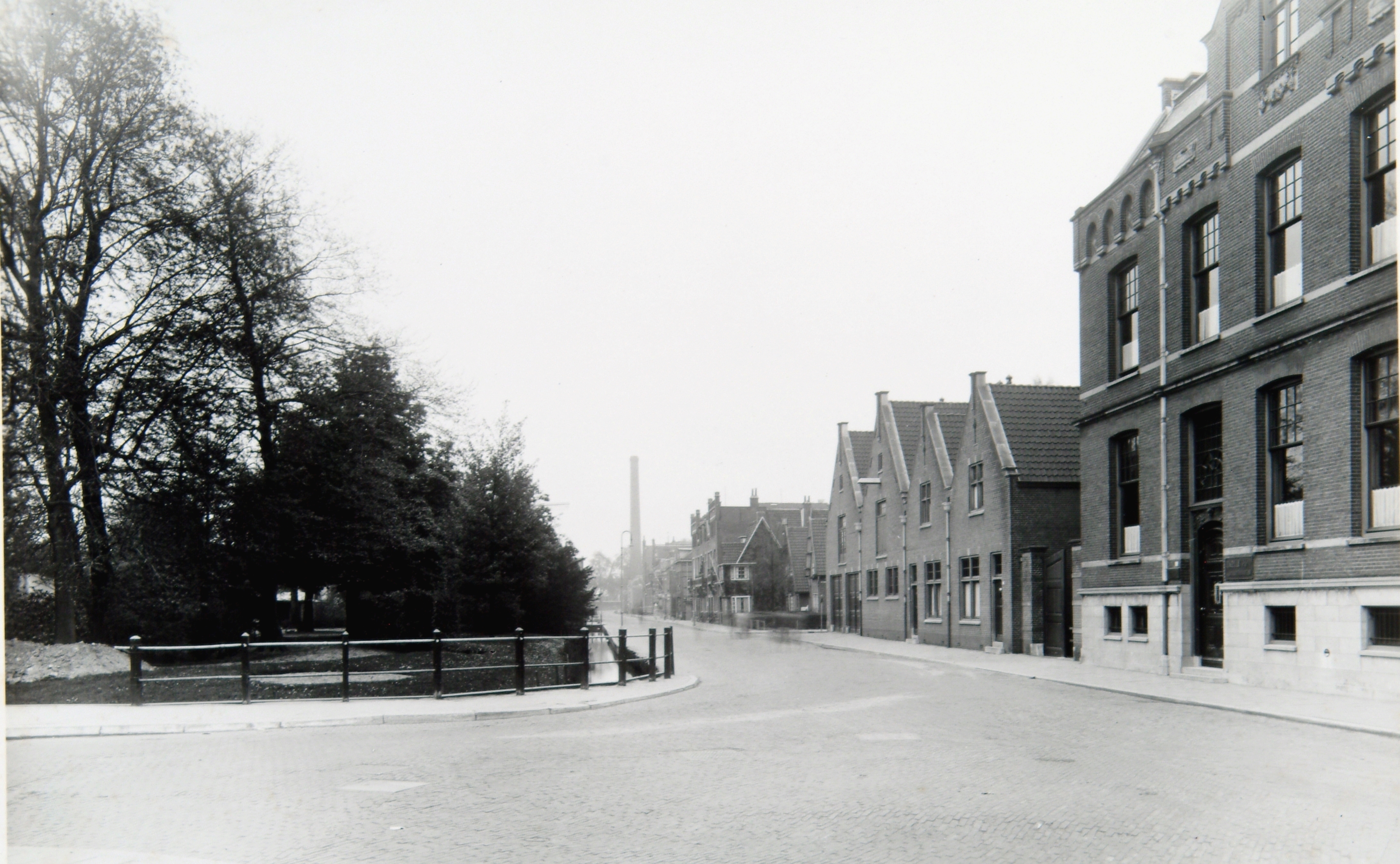 - Gezicht op de Godfried Schalckensingel vanaf de hoek St. Jorisweg. Rechts het kantoor van gemeentewerken, de voormalige villa Soekasari. Links een deel van de sloot die de tuin van Kunstmin scheidde van de straat. De schoorsteen op de achtergrond hoort bij de elektriciteitscentale aan de Noordendijk.
