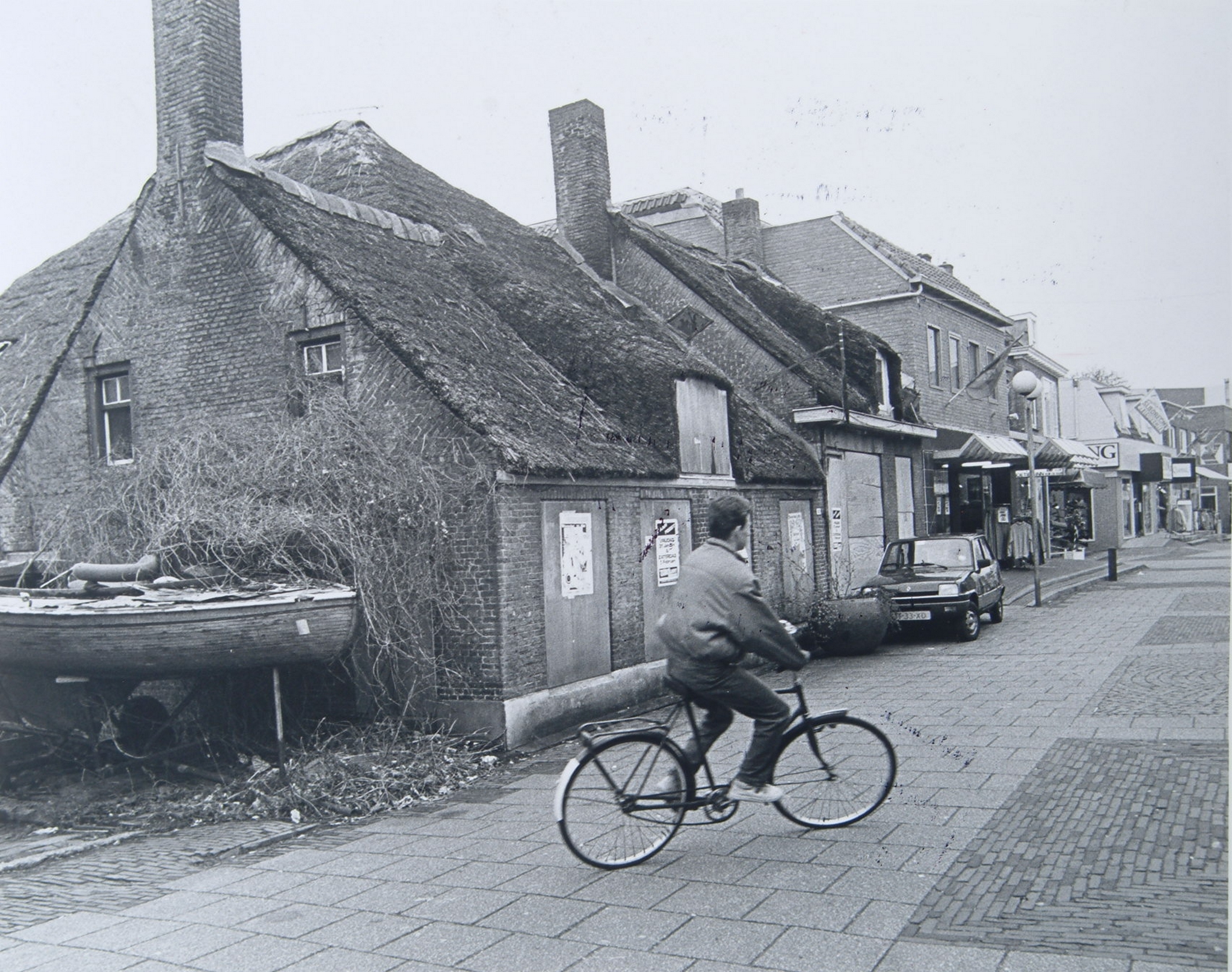 - auto's boerderijen bouwvallen fietsers rieten daken