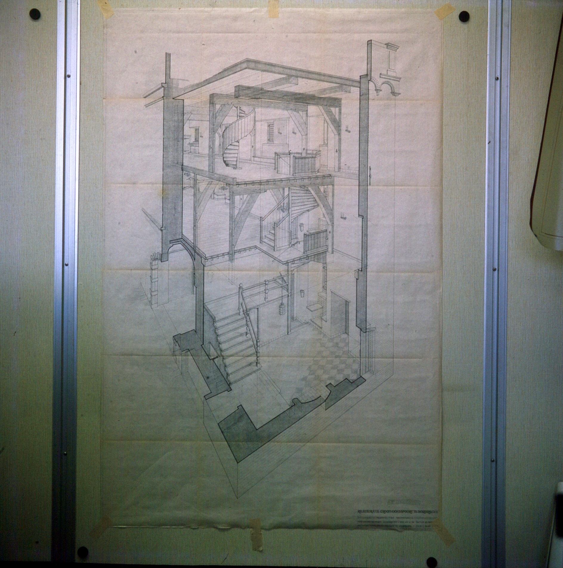 - Bouwkundige tekening van het interieur, voor de restauratie van de Groothoofdspoort.