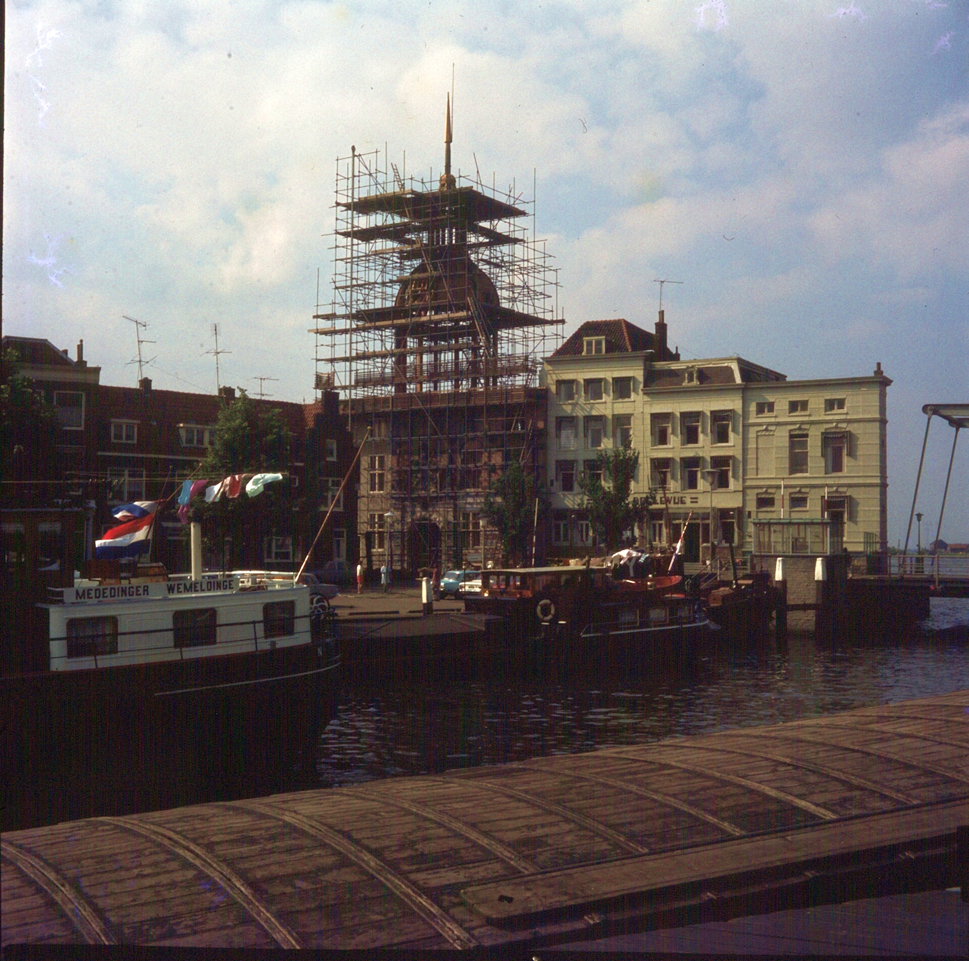 - Zicht op de Groothoofdspoort in de steigers, vanaf de Taankade.
