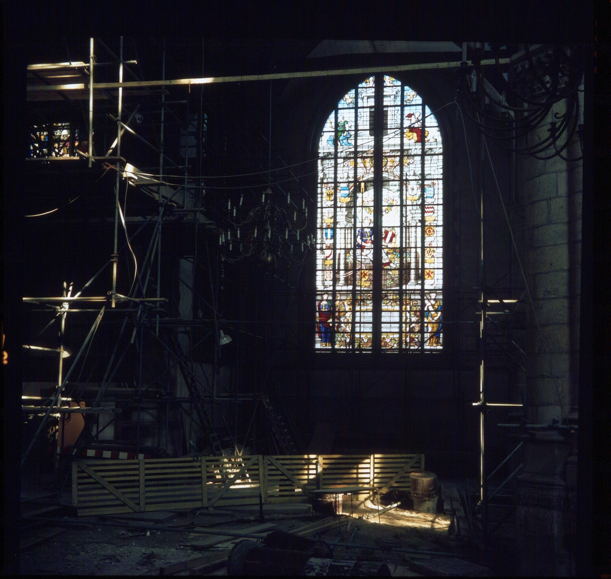 Glas in lood ramen in de Nieuwkerk, de plaats waar de koepel is hersteld voor de …