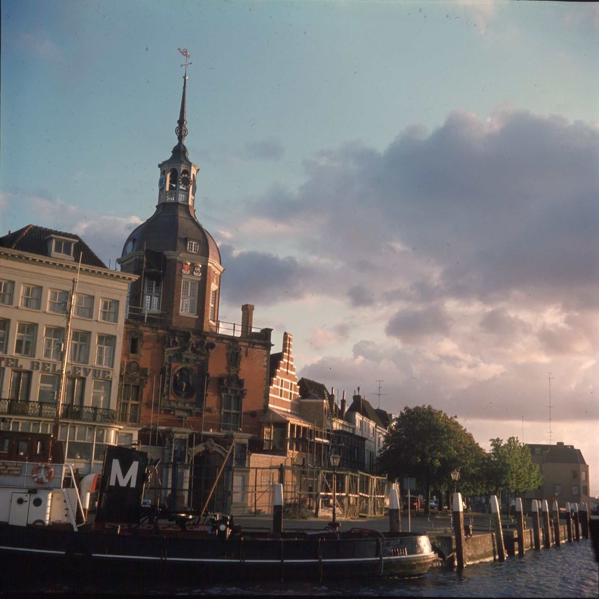 - Op de voorgrond een sleepboot, op de achtergrond de Groothoofdspoort.