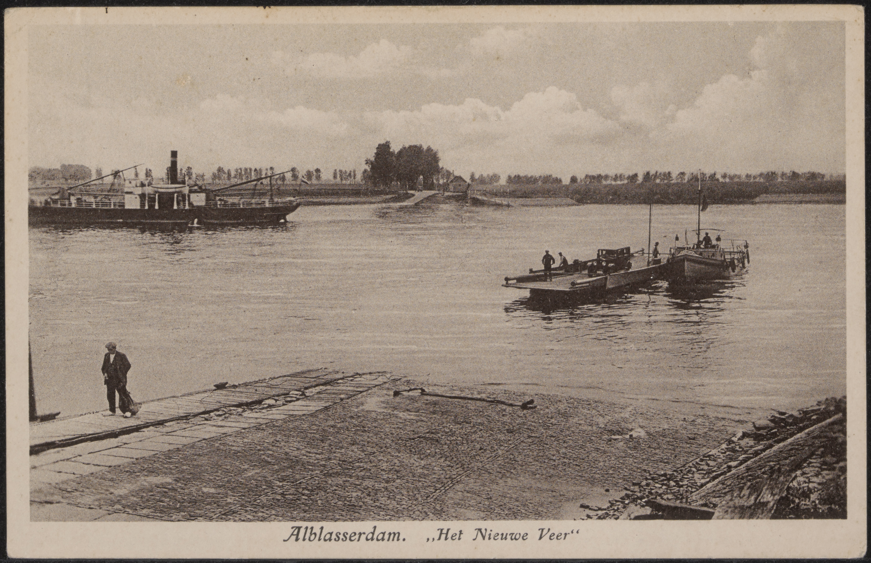 - Het overzetveer Alblasserdam - Ridderkerk nabij het Rijzenwiel aan de West Kinderdijk, het zogenaamde Nieuwe Veer.
