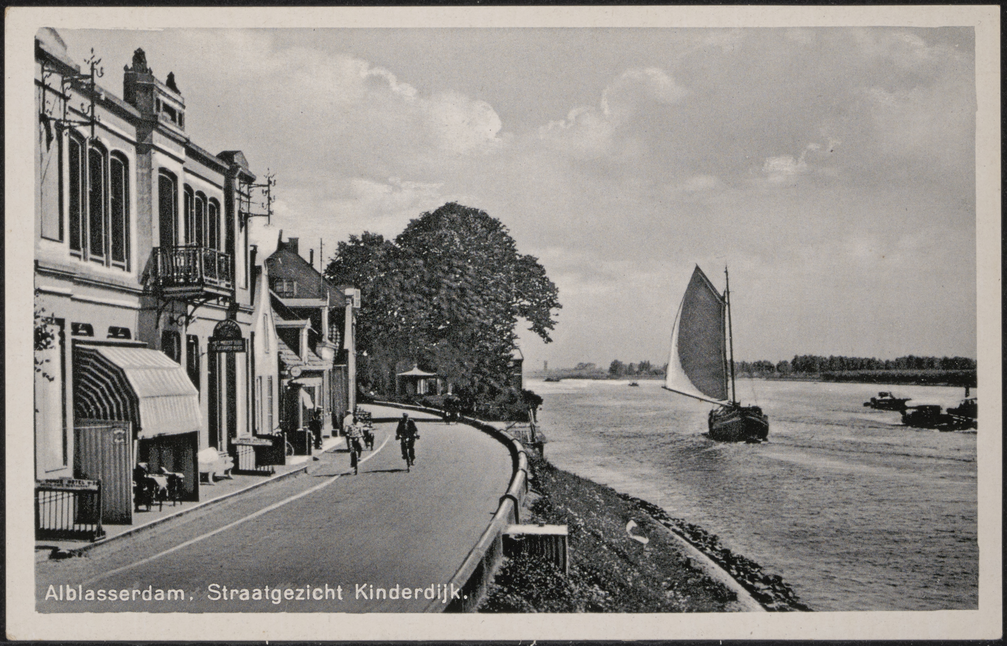 Sociëteit Ons Genoegen aan de West Kinderdijk langs de Noord in Alblasserdam.