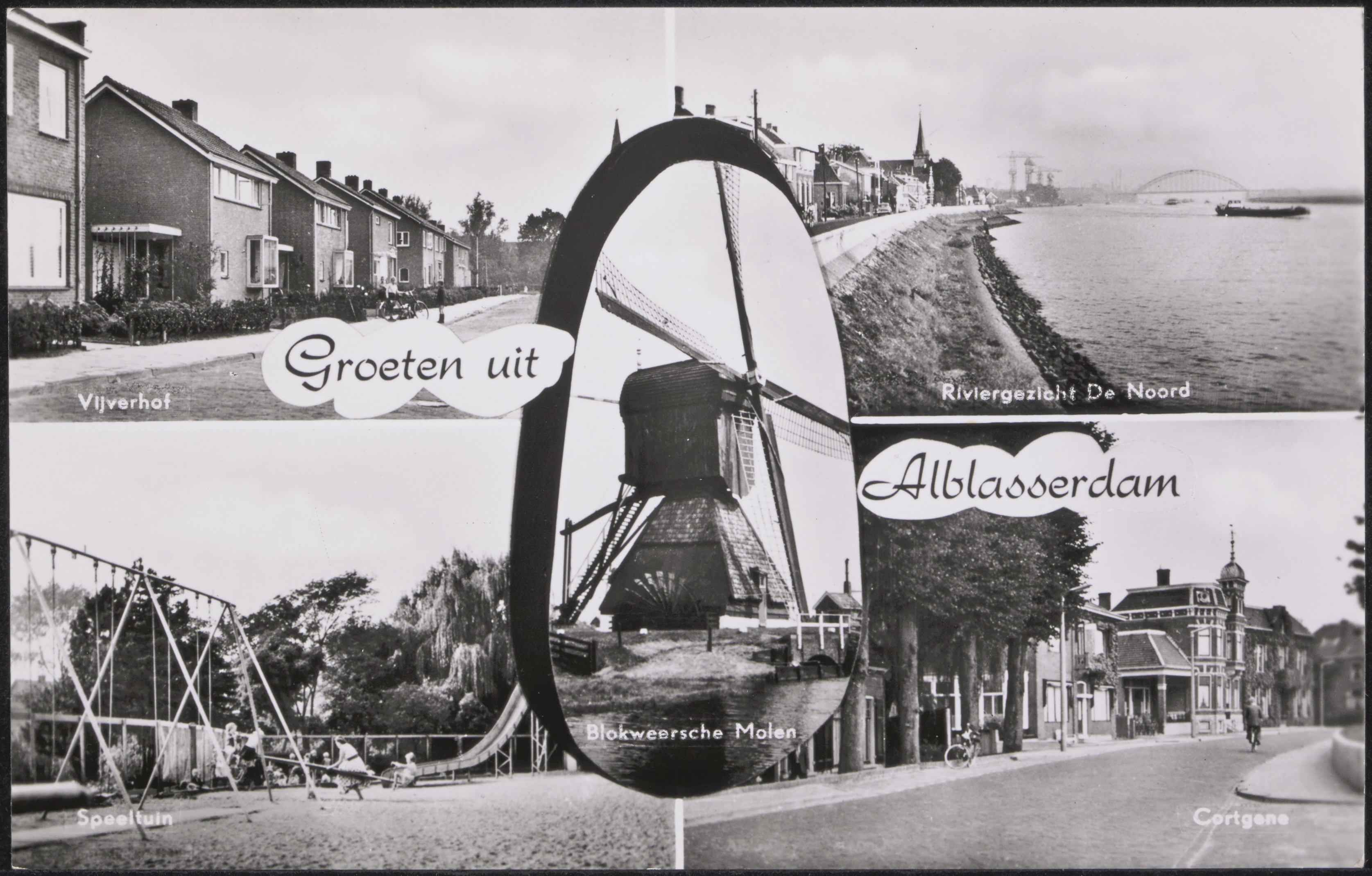 - Linksboven: Vijverhof in Alblasserdam. Rechtsboven: De Oost Kinderdijk in Alblasserdam. Midden: Molen Blokweer aan de Molenkade in Kinderdijk. Linksonder: Speeltuin Vereniging Kinderdijk aan de Fop Smitstraat in Alblasserdam. Rechtsonder: Cortgene in Alblasserdam.