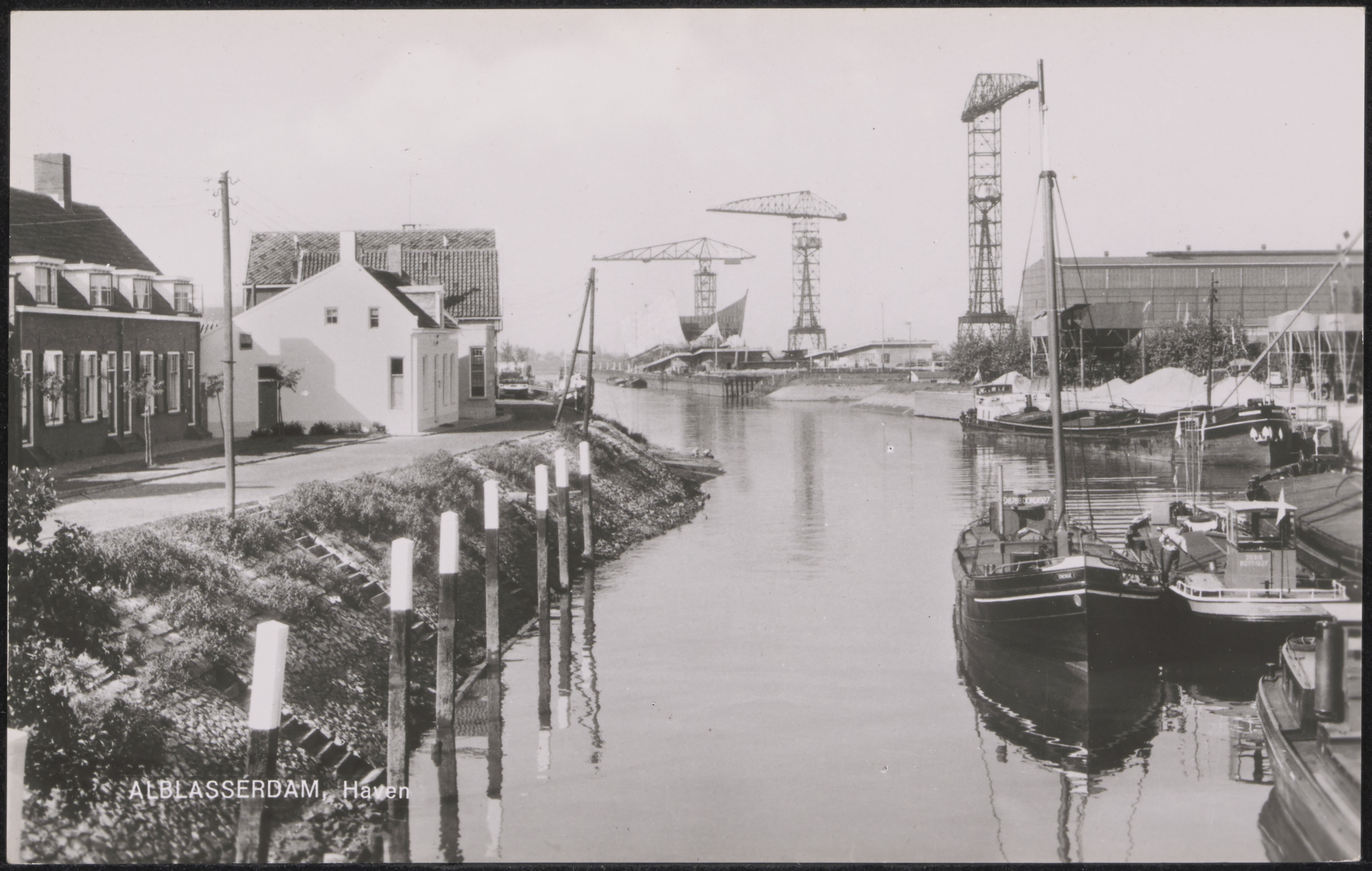 De Alblas langs het Zuiderstek in Alblasserdam. Rechts scheepswerf Cornelis Smit.
