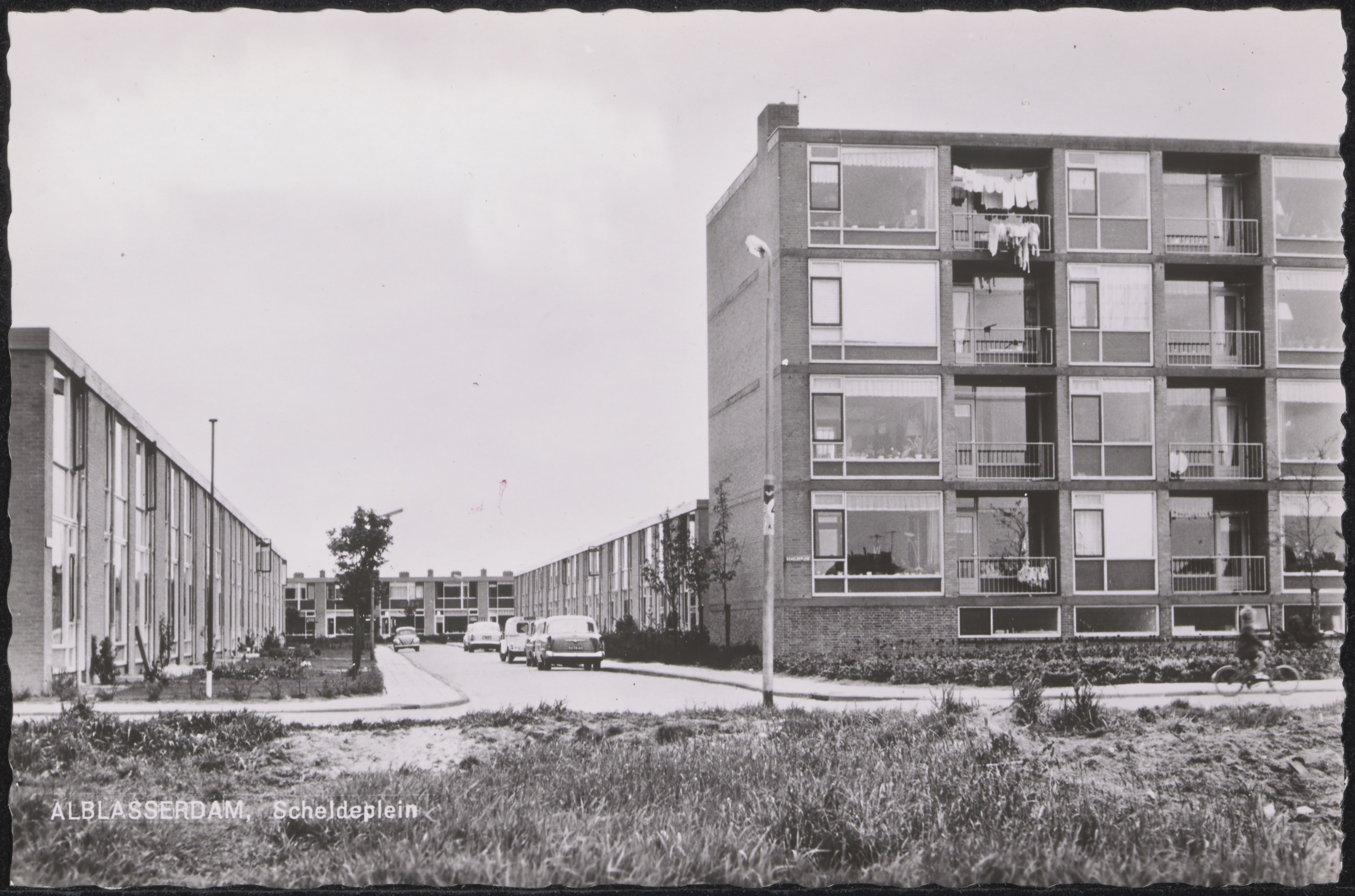 - De Eksterstraat vanaf de Rijnstraat/Scheldeplein in Alblasserdam.