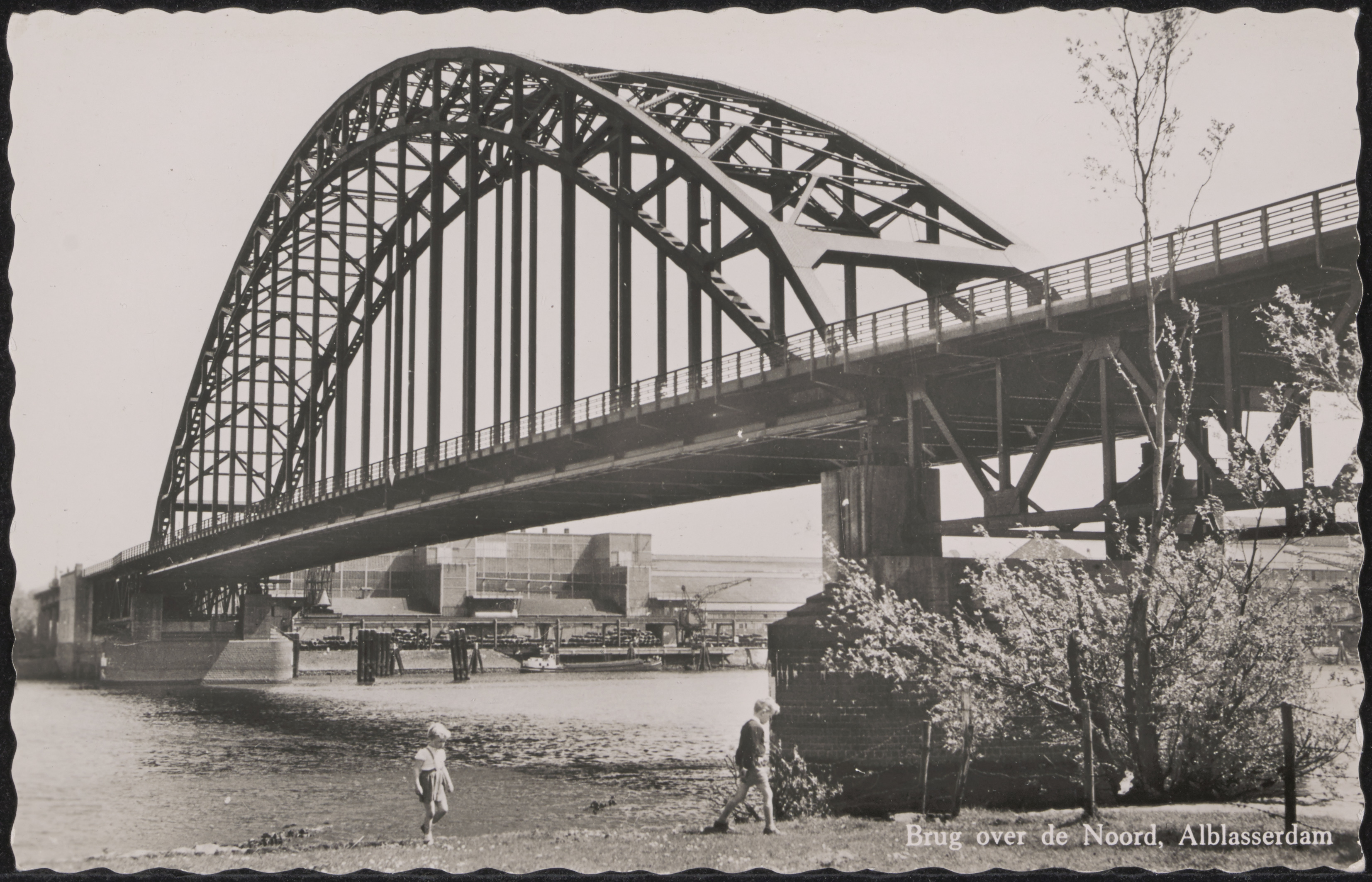 Brug over de Noord in de richting van de kabelfabriek in Alblasserdam.