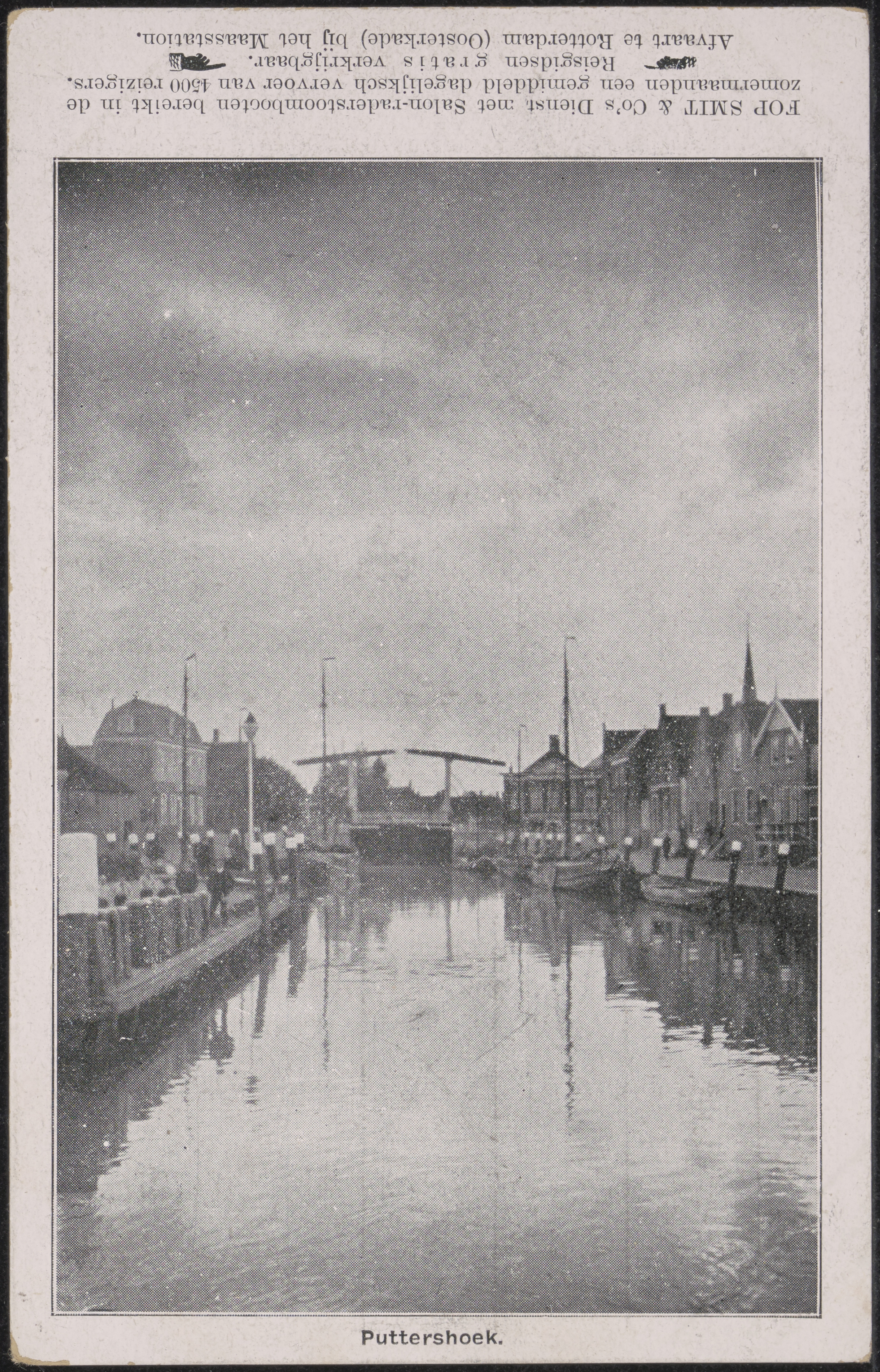 - De haven van Puttershoek op een reclame van rederij Fop Smit voor het maken van reisjes met salonraderstoomboten.