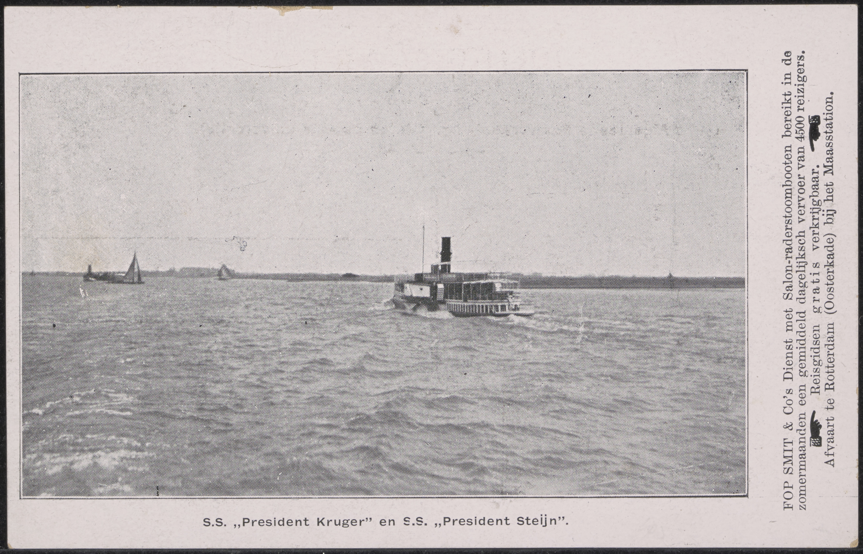 - Reclame van rederij Fop Smit voor het maken van reisjes met een van de salonraderstoomboten President Kruger of President Steijn.