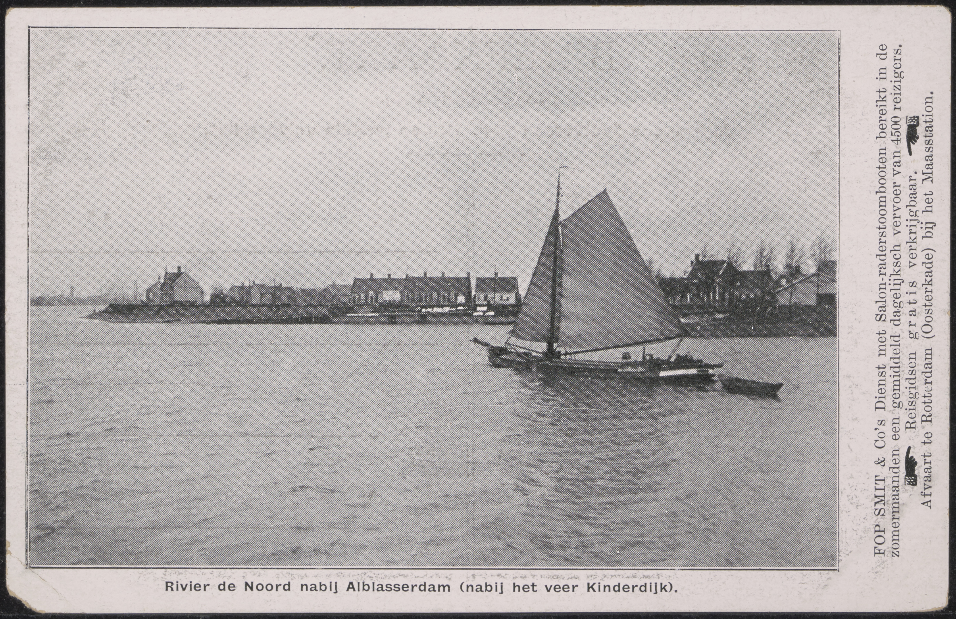 De Noord bij Kinderdijk op een reclame voor het maken van boottochtjes bij rederij Fop …