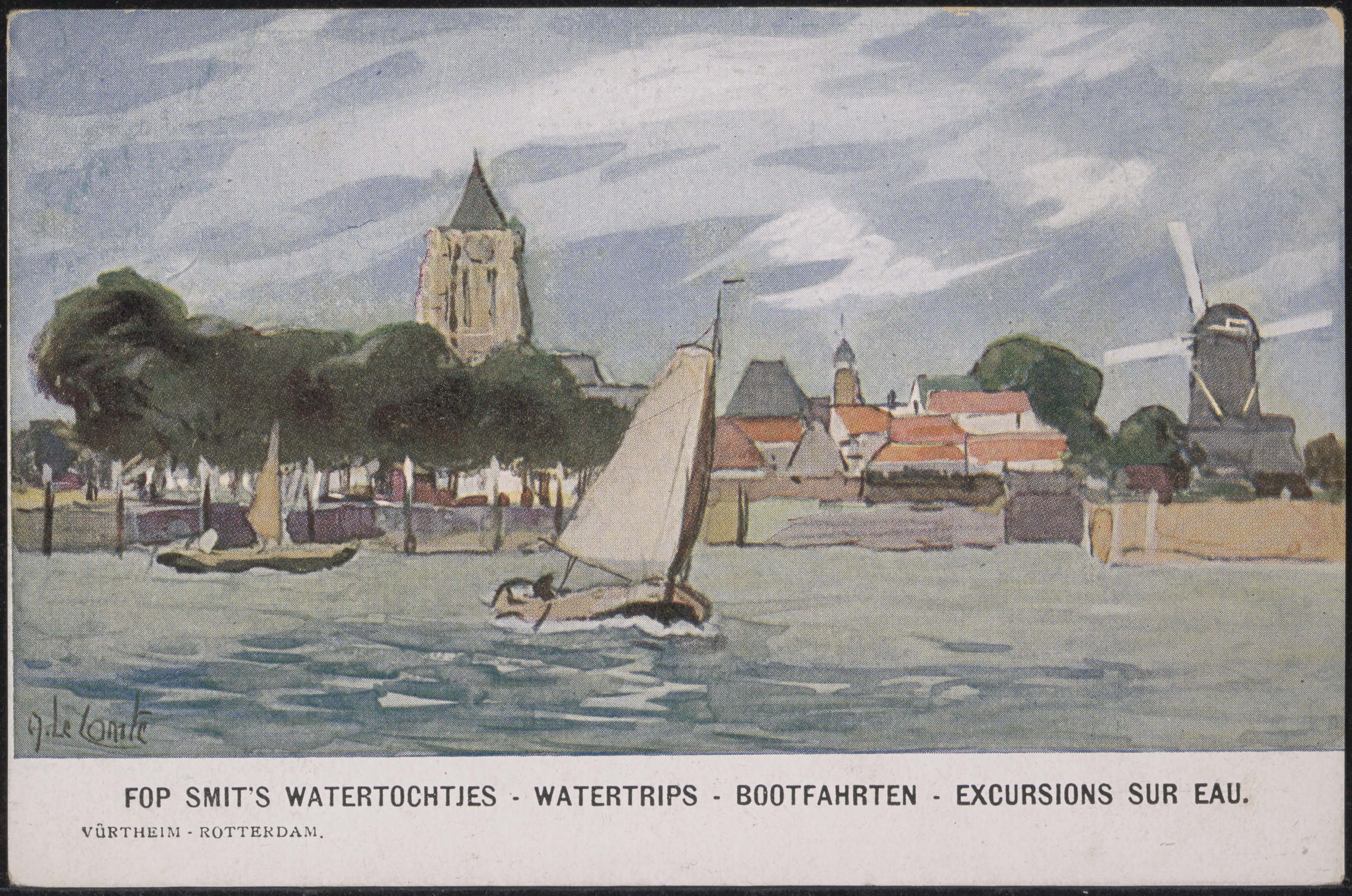 - Reclame voor het maken van boottochtjes bij rederij Fop Smit.