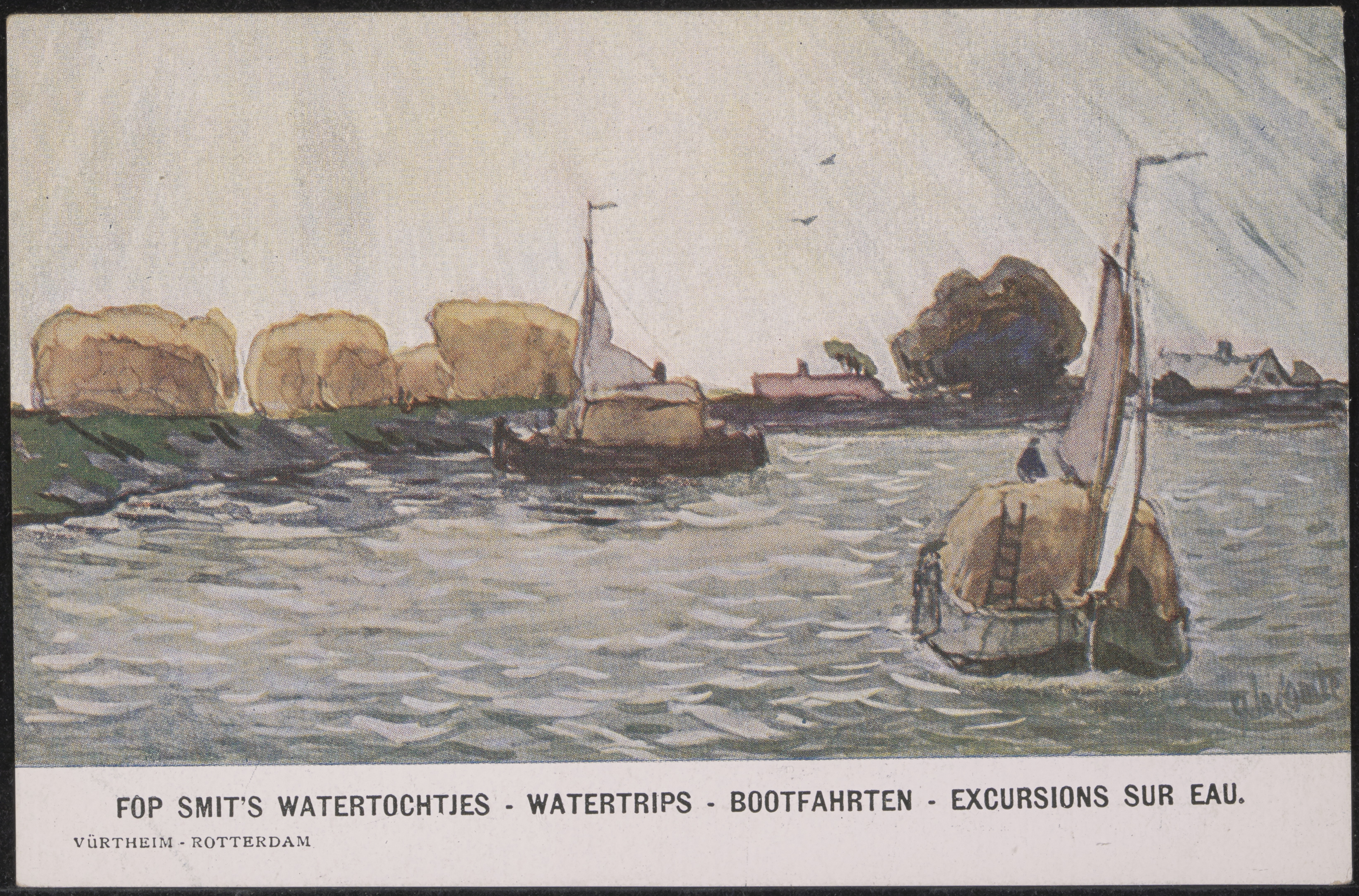 - Reclame voor het maken van boottochtjes bij rederij Fop Smit.
