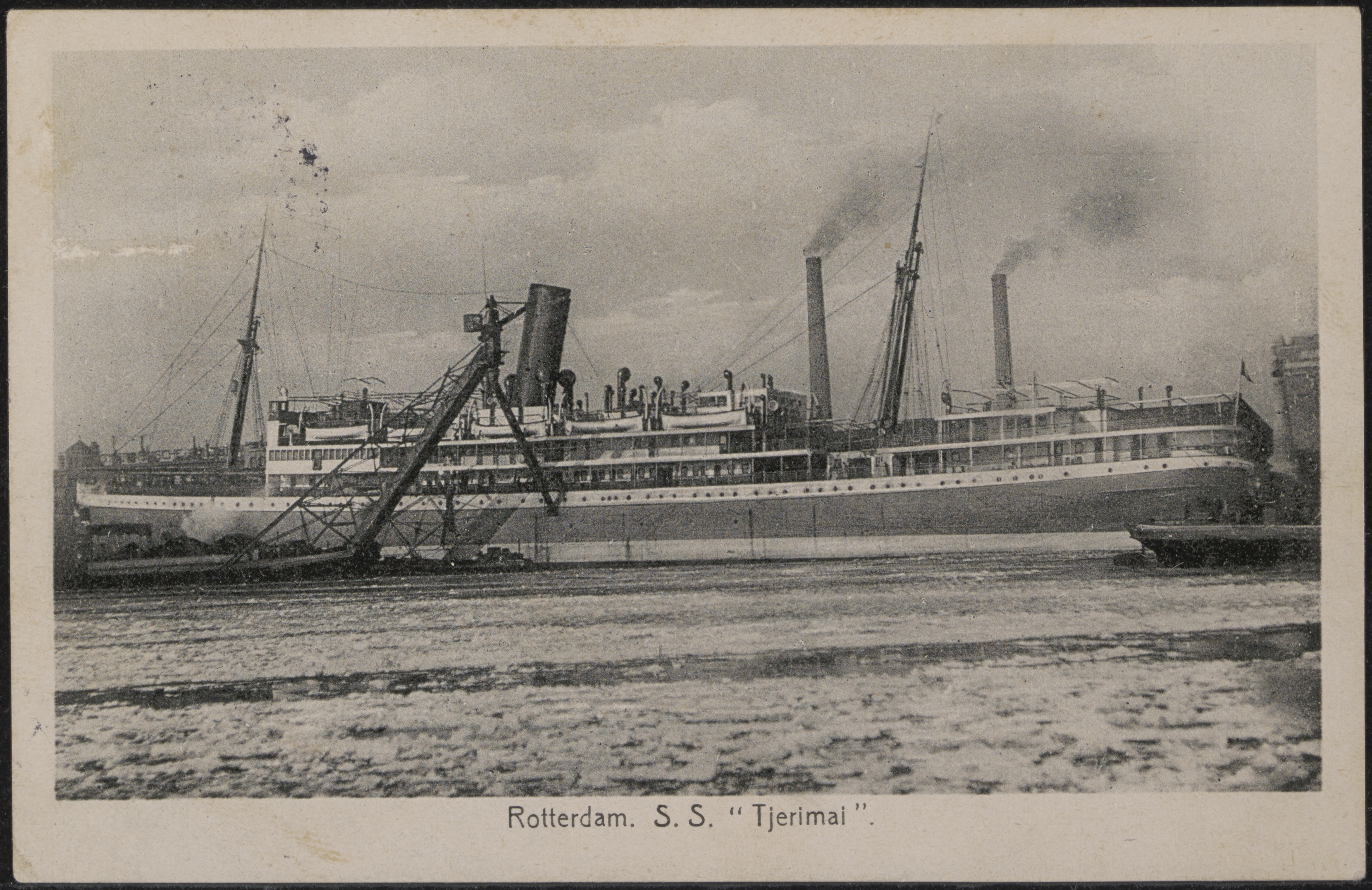 - Stoomschip Tjerimai voor passagiers en vracht in Rotterdam.