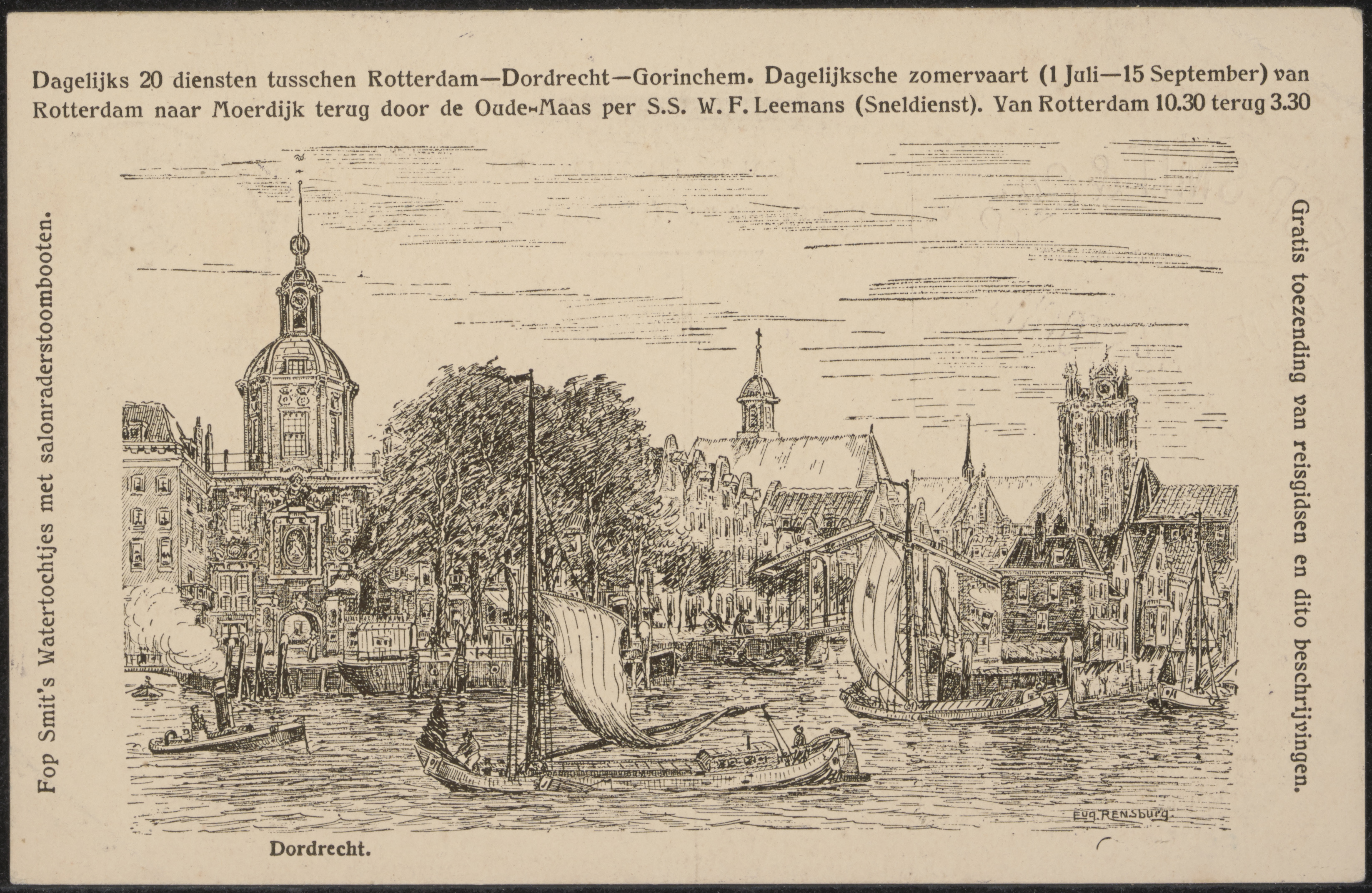 - Impressie van Dordrecht.op een reclame van rederij Fop Smit.