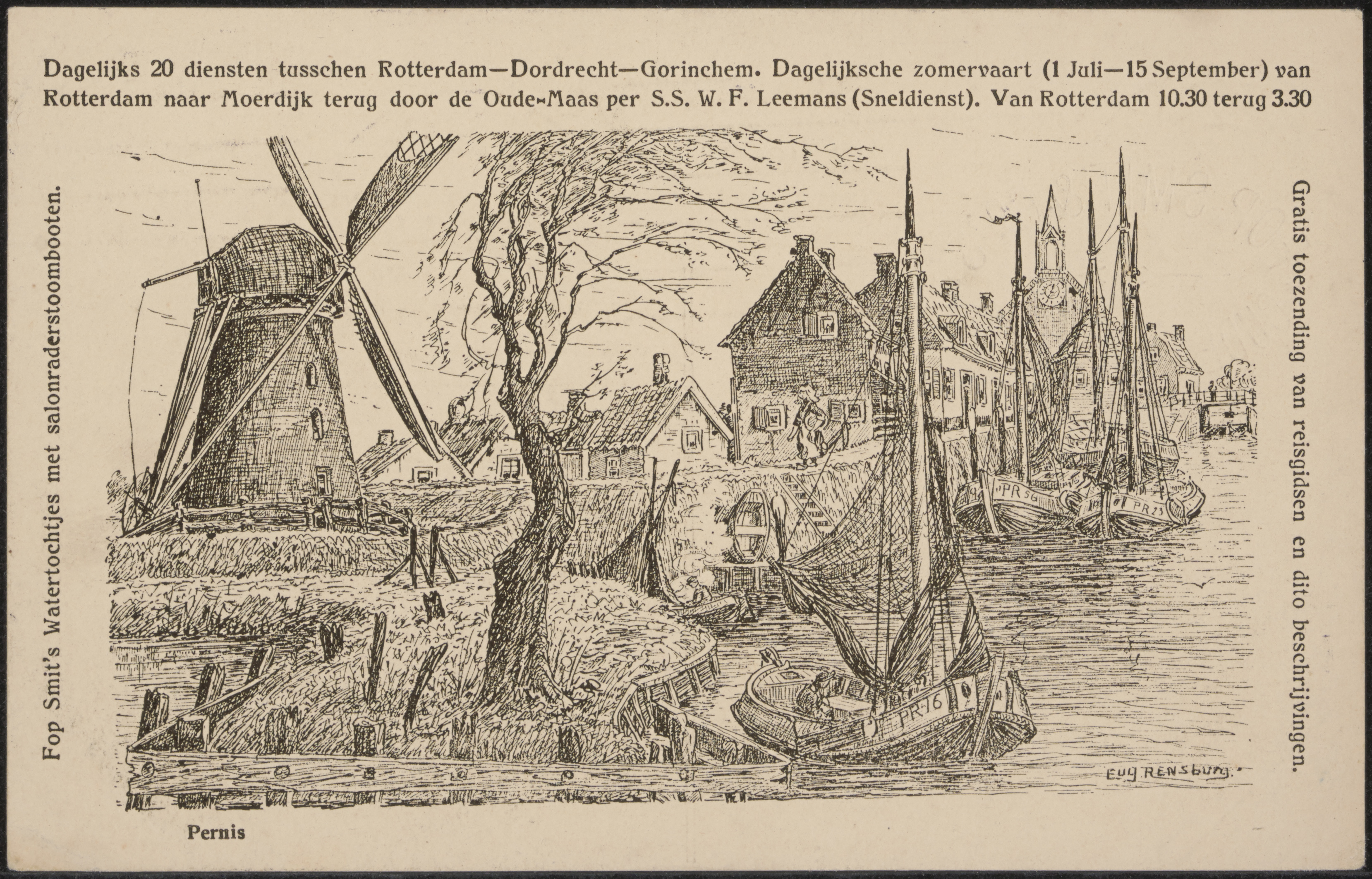 - Molen De Zwaan in Pernis op een reclame van rederij Fop Smit.