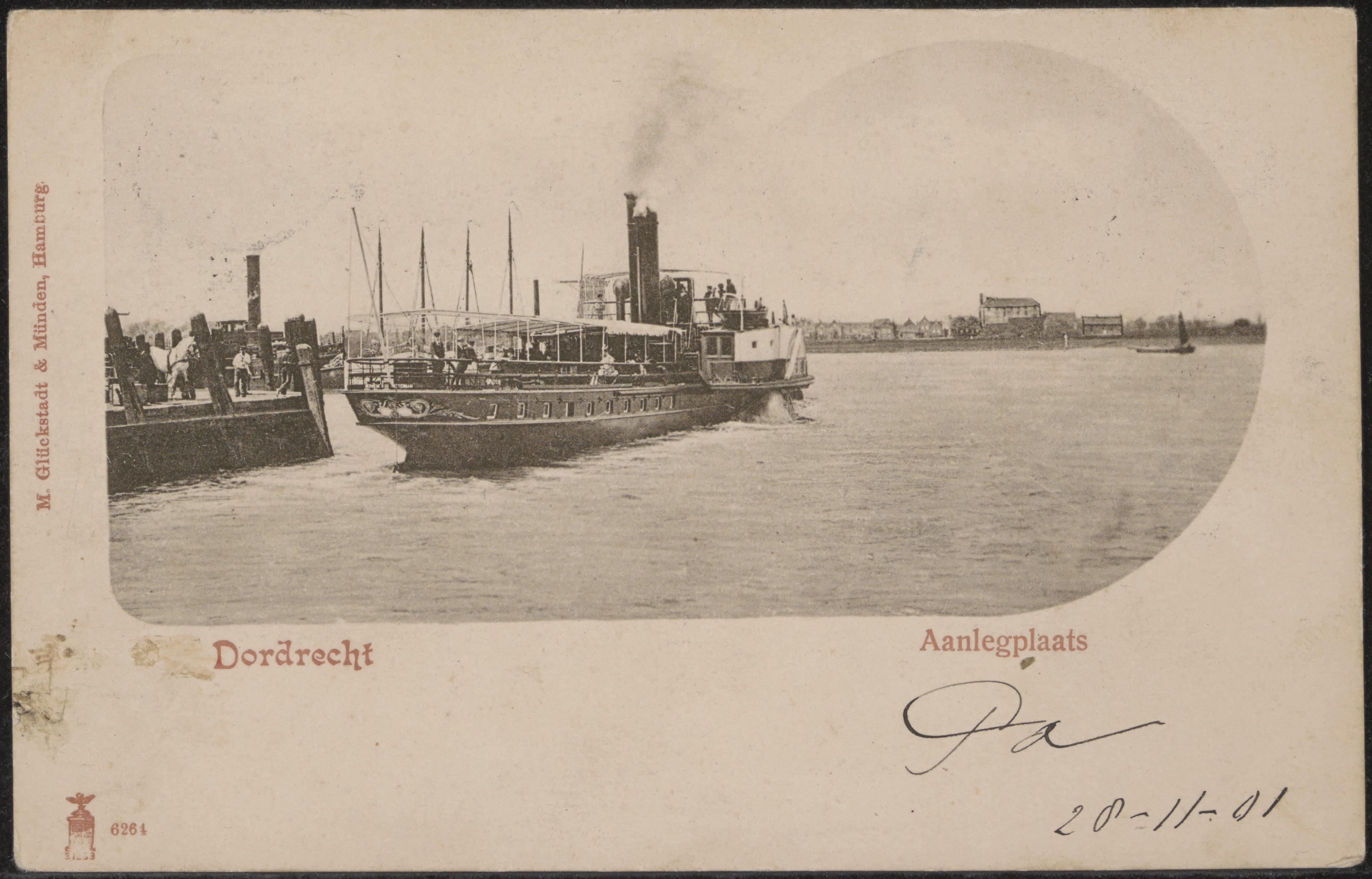 - Stoomraderboot Merwede II bij de kade van het Groothoofd.