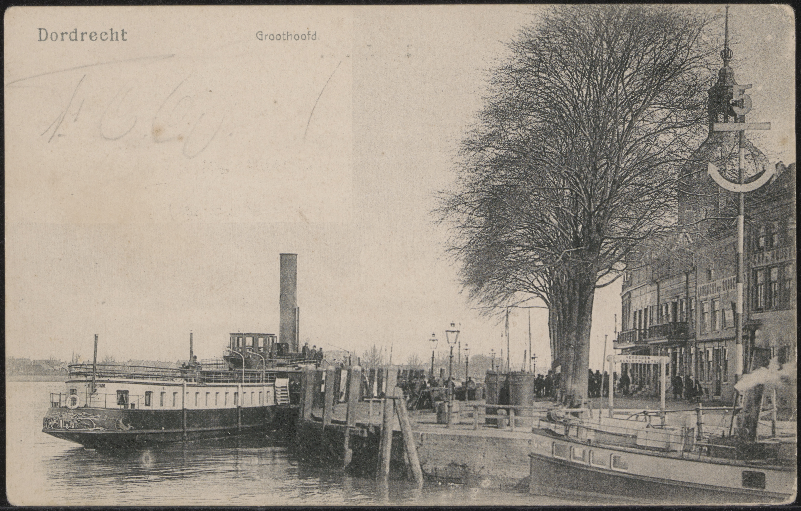 Stoomraderboot bij het Groothoofd. Rechts het veerbootje naar 's-Gravendeel.