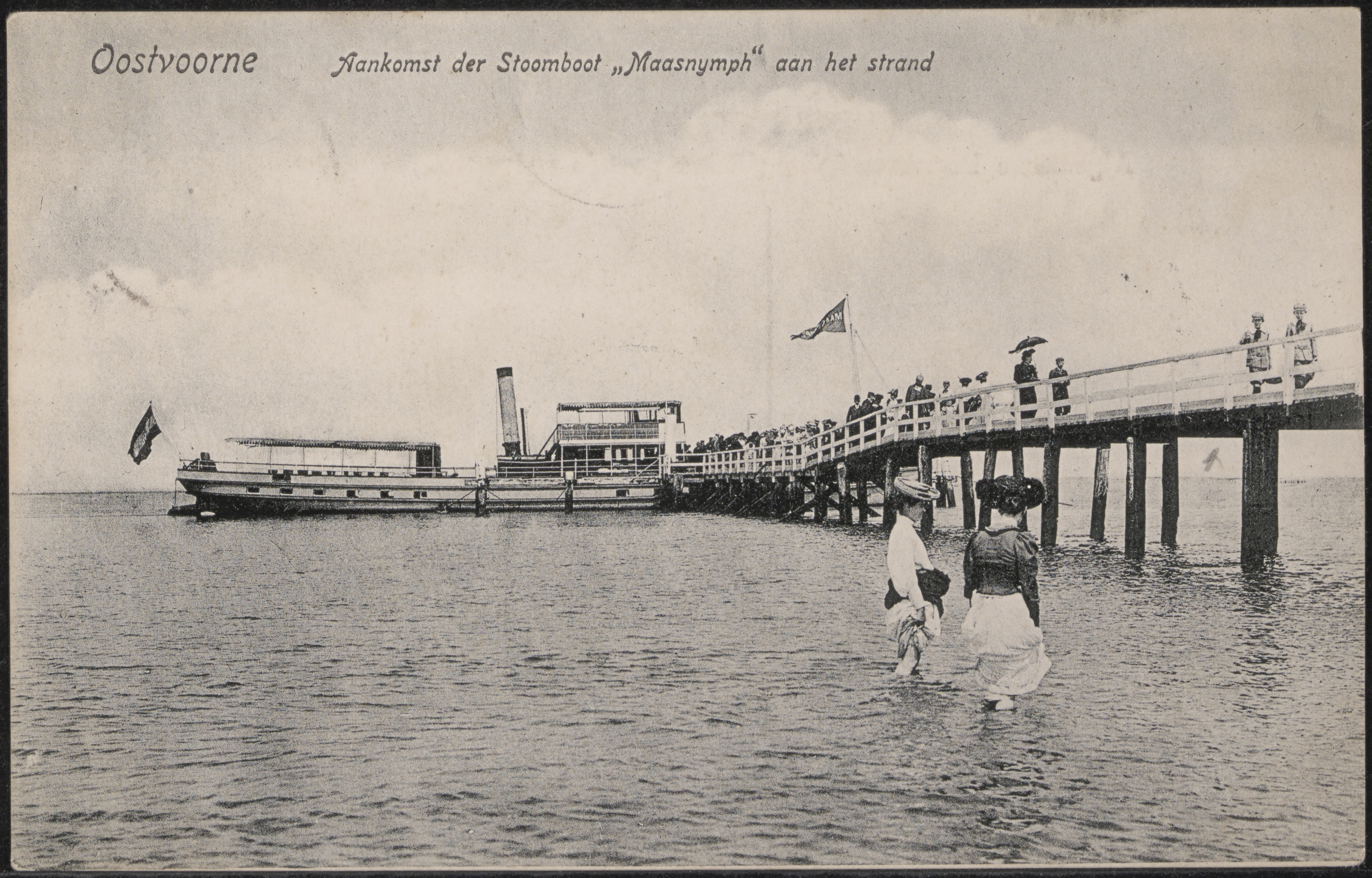 - Stoomboot Maasnymph bij de aanlegplaats op het strand bij Oostvoorne.