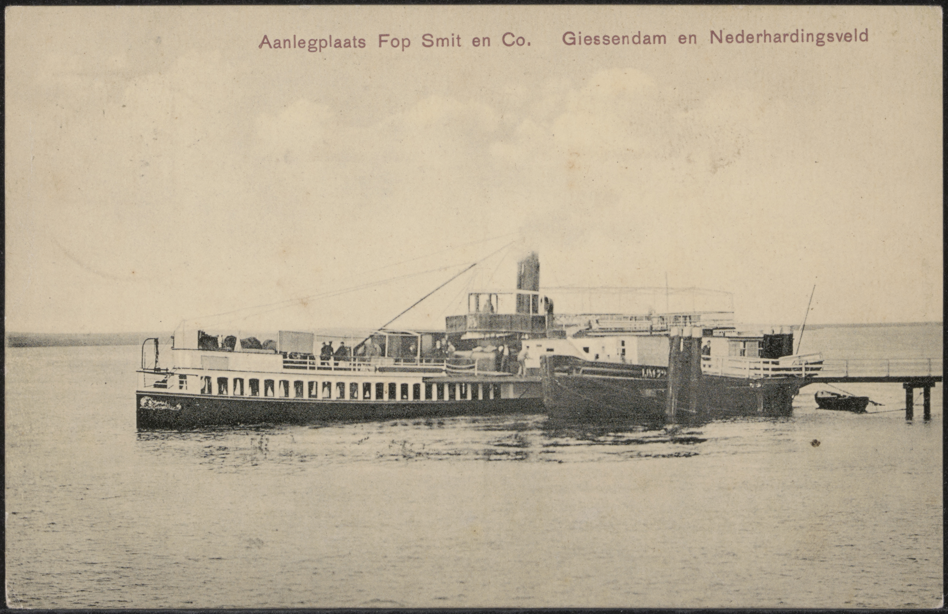 Stoomraderboot van rederij Fop Smit op de Beneden Merwede bij de steiger in …