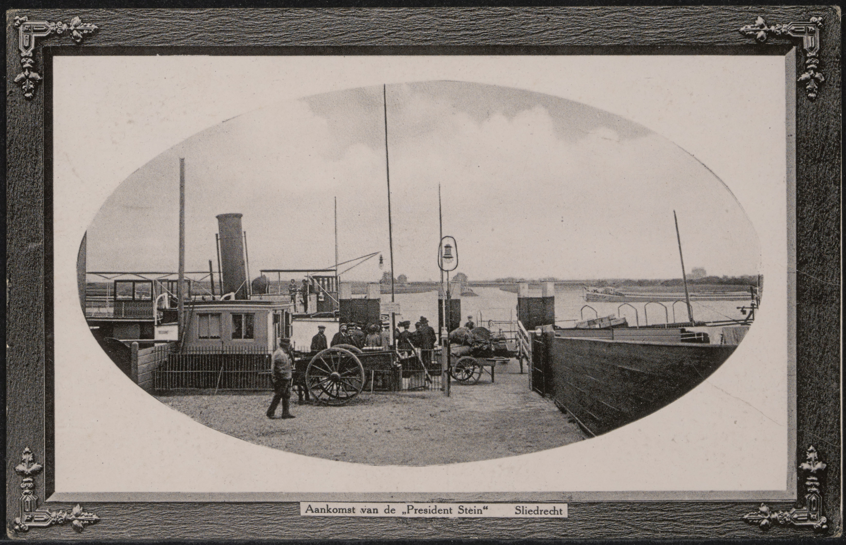 - Stoomraderboot President Steijn bij de aanlegplaats in Sliedrecht. Aan de overzijde van de Beneden Merwede de toegang naar de Helsluis.