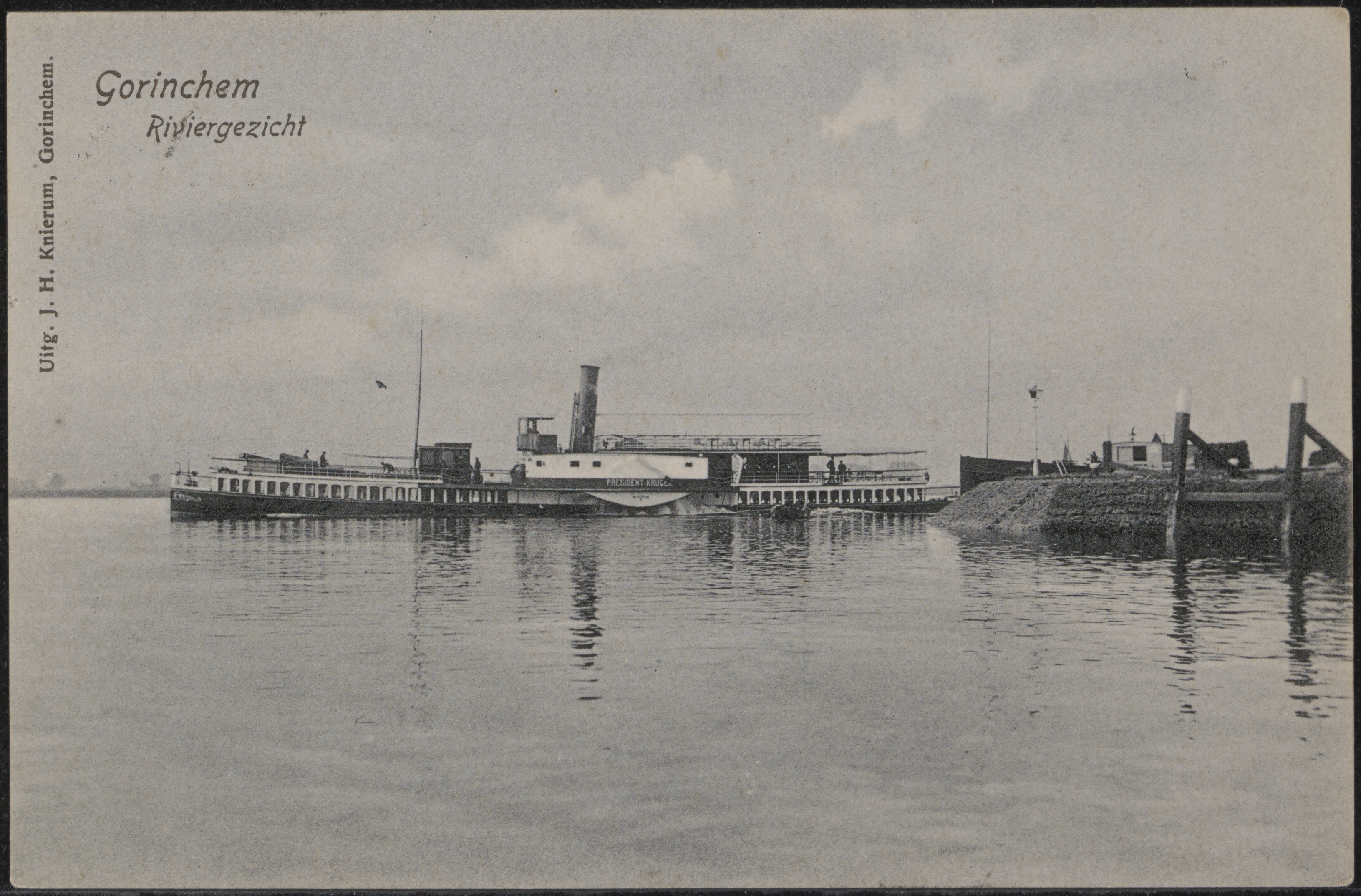- Stoomraderboot President Kruger op de Boven Merwede aan de kade in Gorinchem.