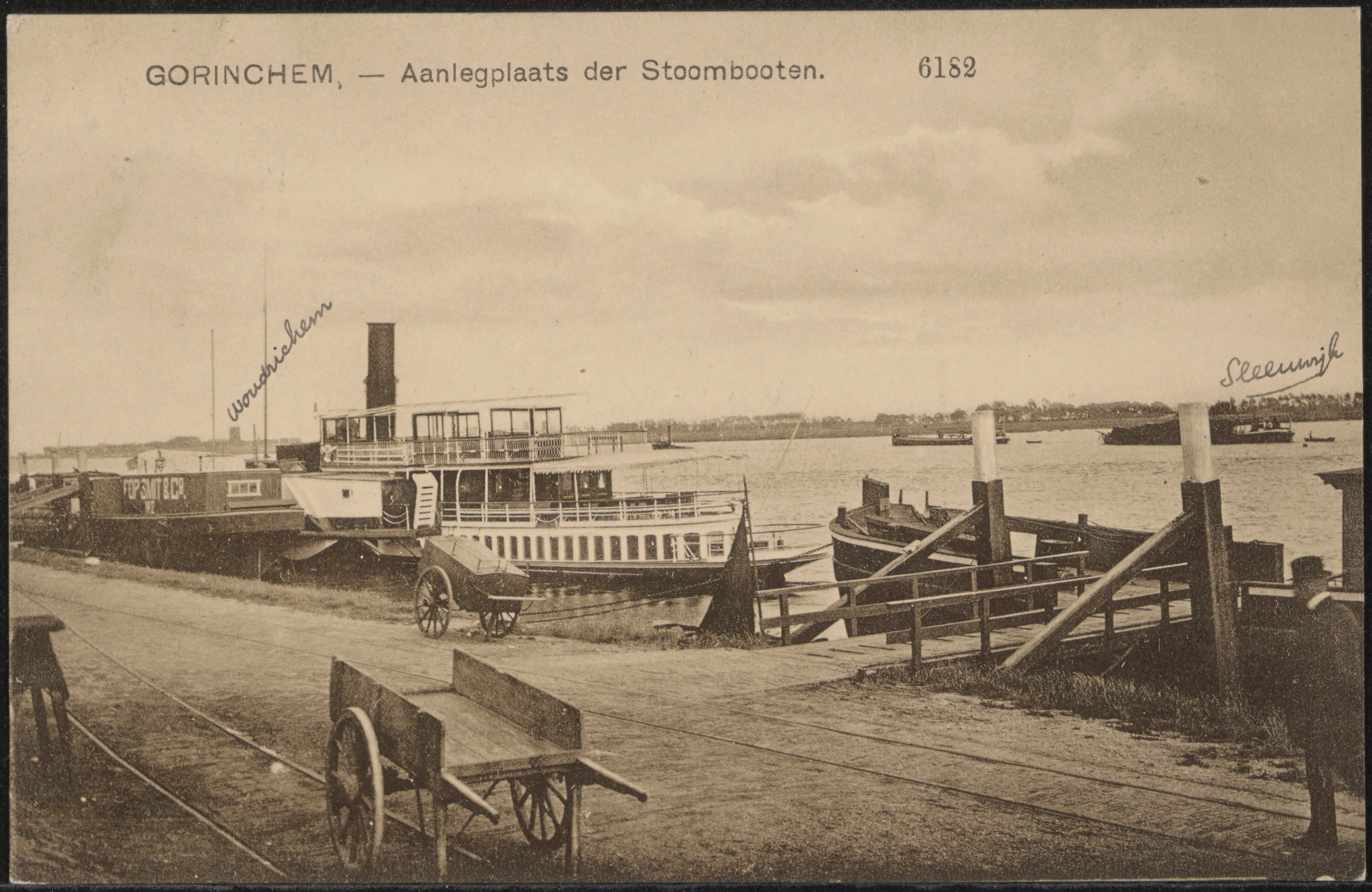Aanlegplaats voor stoomboten in Gorinchem gelen aan de Boven Merwede tegenover …