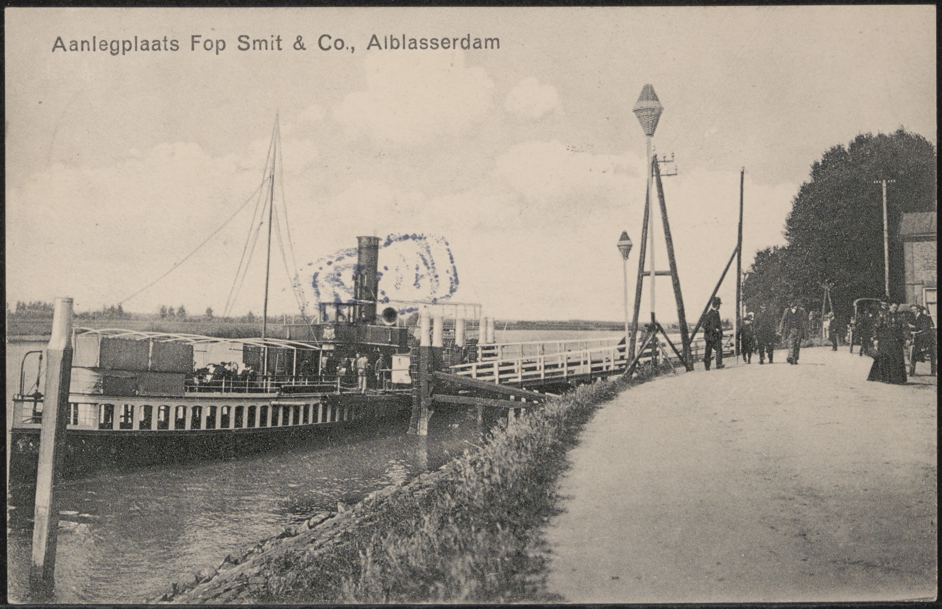 - Stoomraderboot van rederij Fop Smit bij de aanlegplaats aan de Oost Kinderdijk in Alblasserdam.