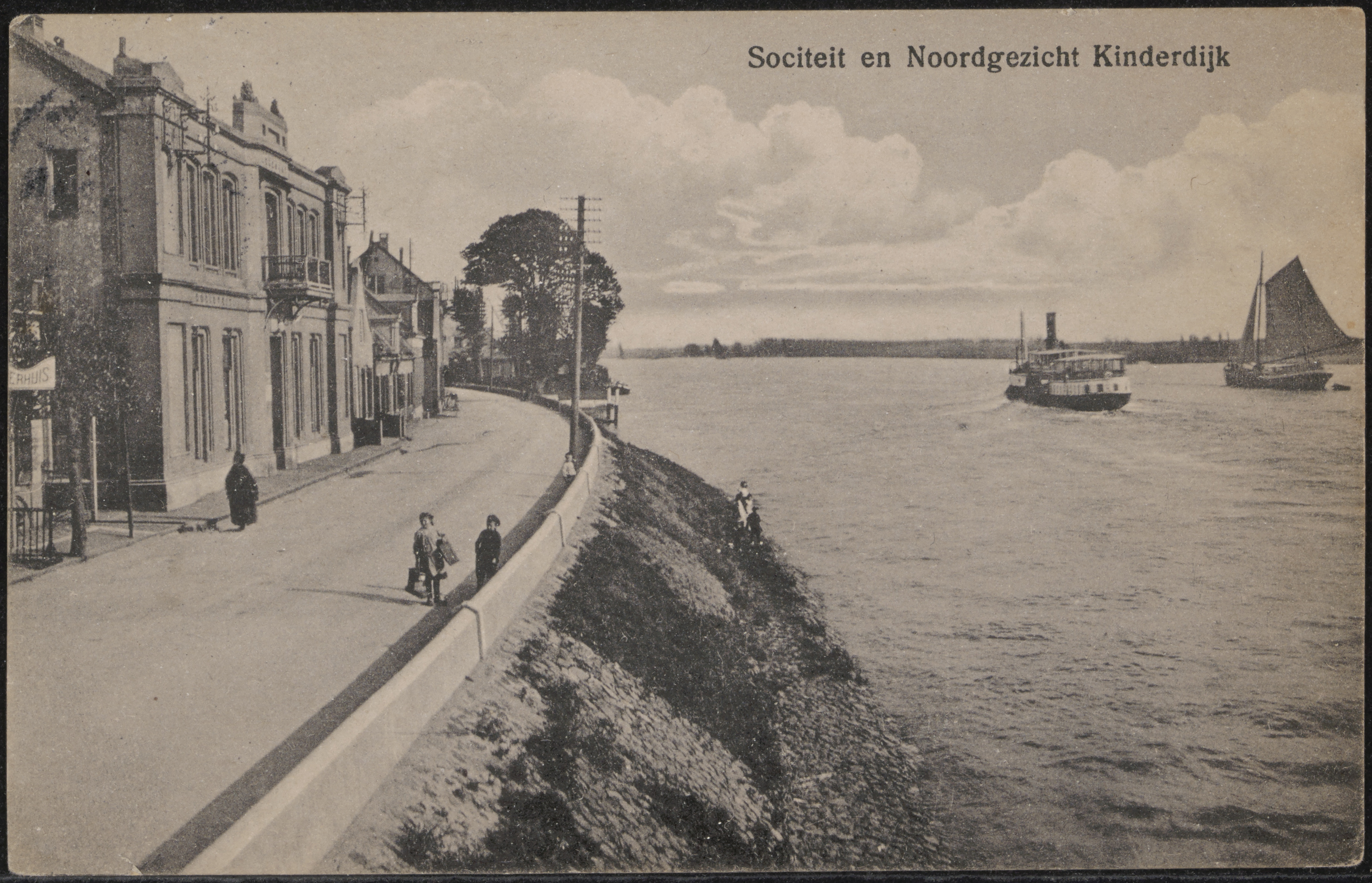 - Sociëteit Ons Genoegen aan de West Kinderdijk in Alblasserdam. met links de en rechts de Noord .