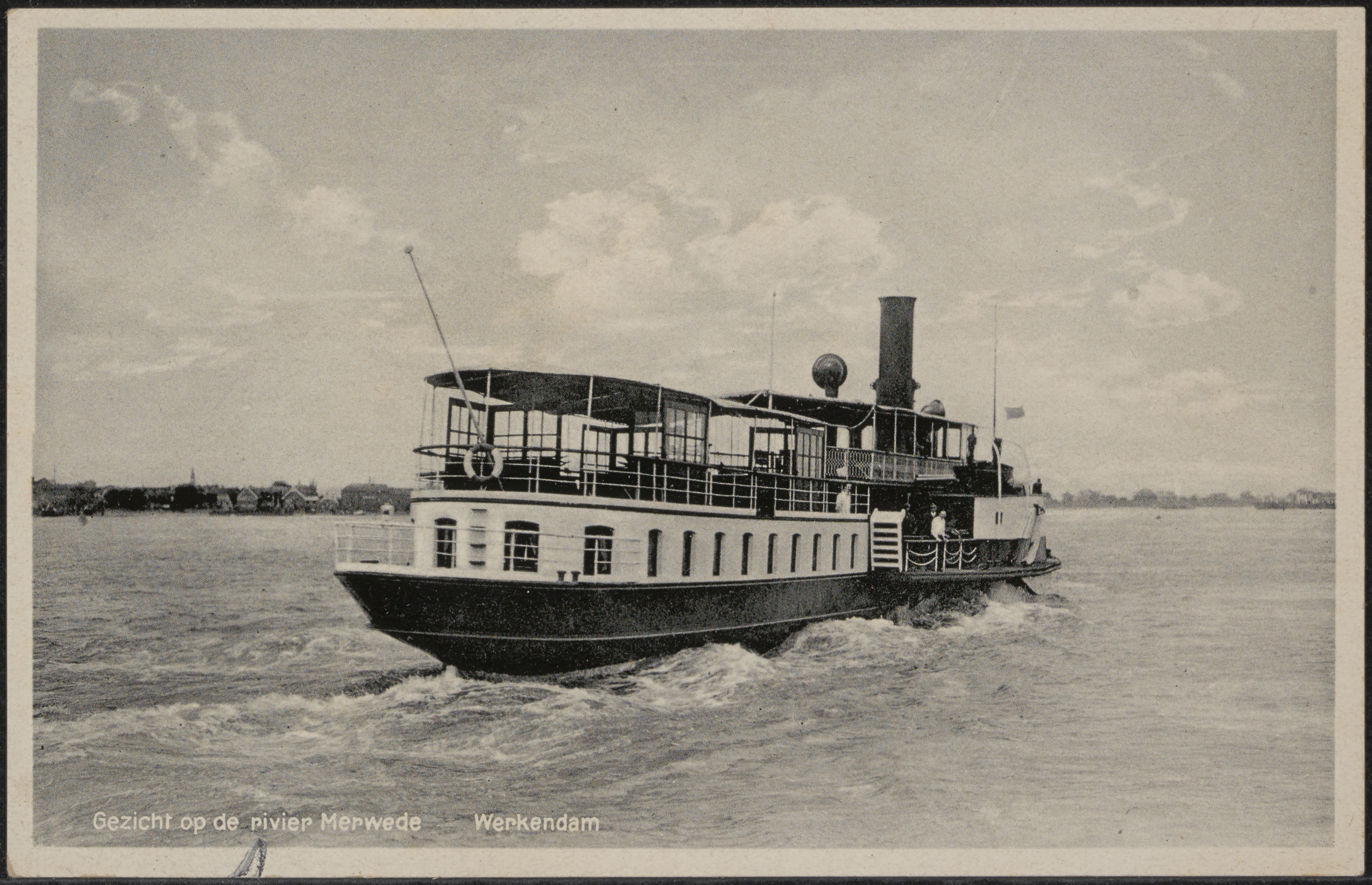 - De stoomraderboot van rederij Fop Smit op de Boven Merwede bij Werkendam.