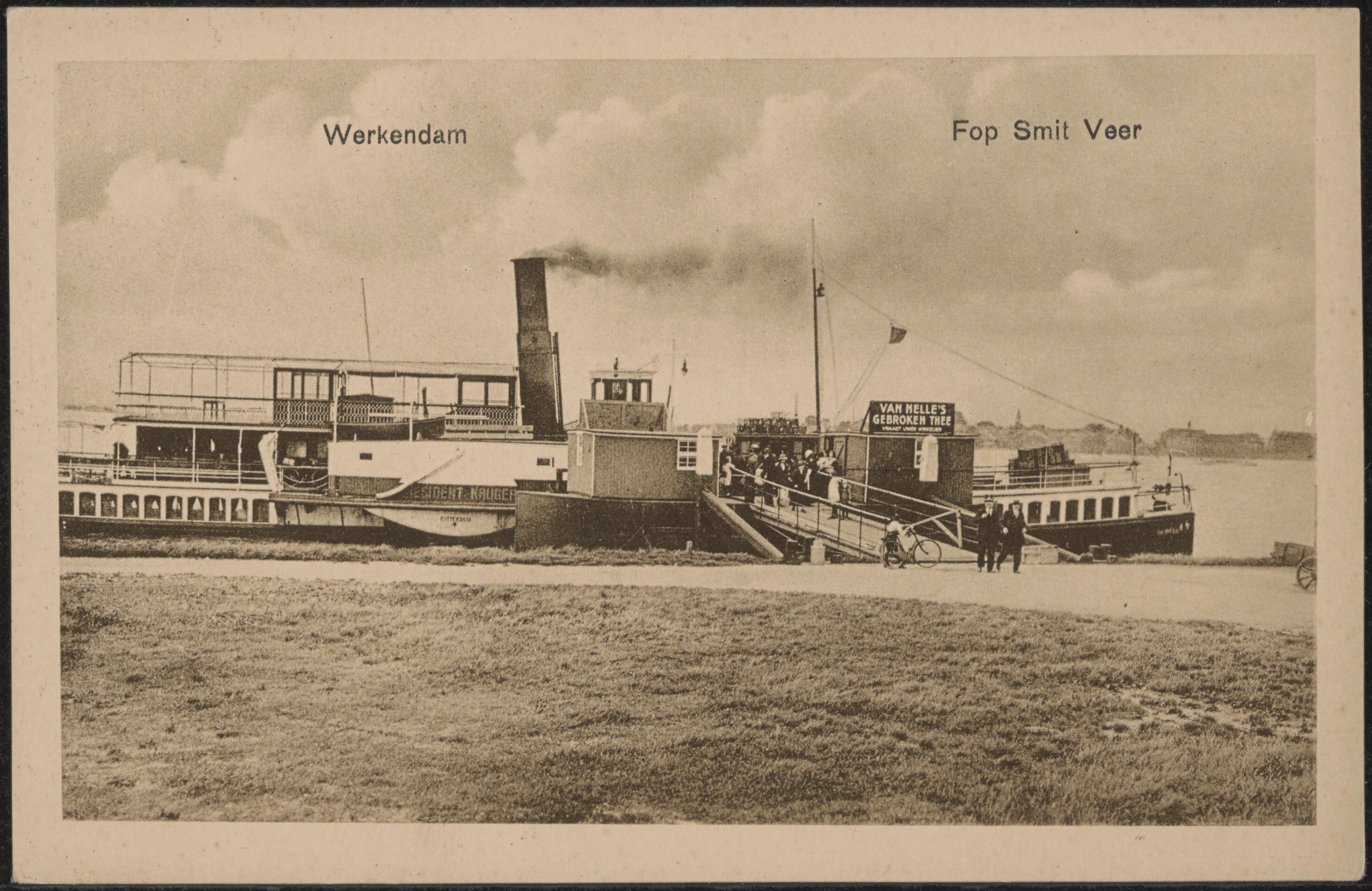 De stoomraderboot van rederij Fop Smit op de Boven Merwede bij de aanlegplaats in …