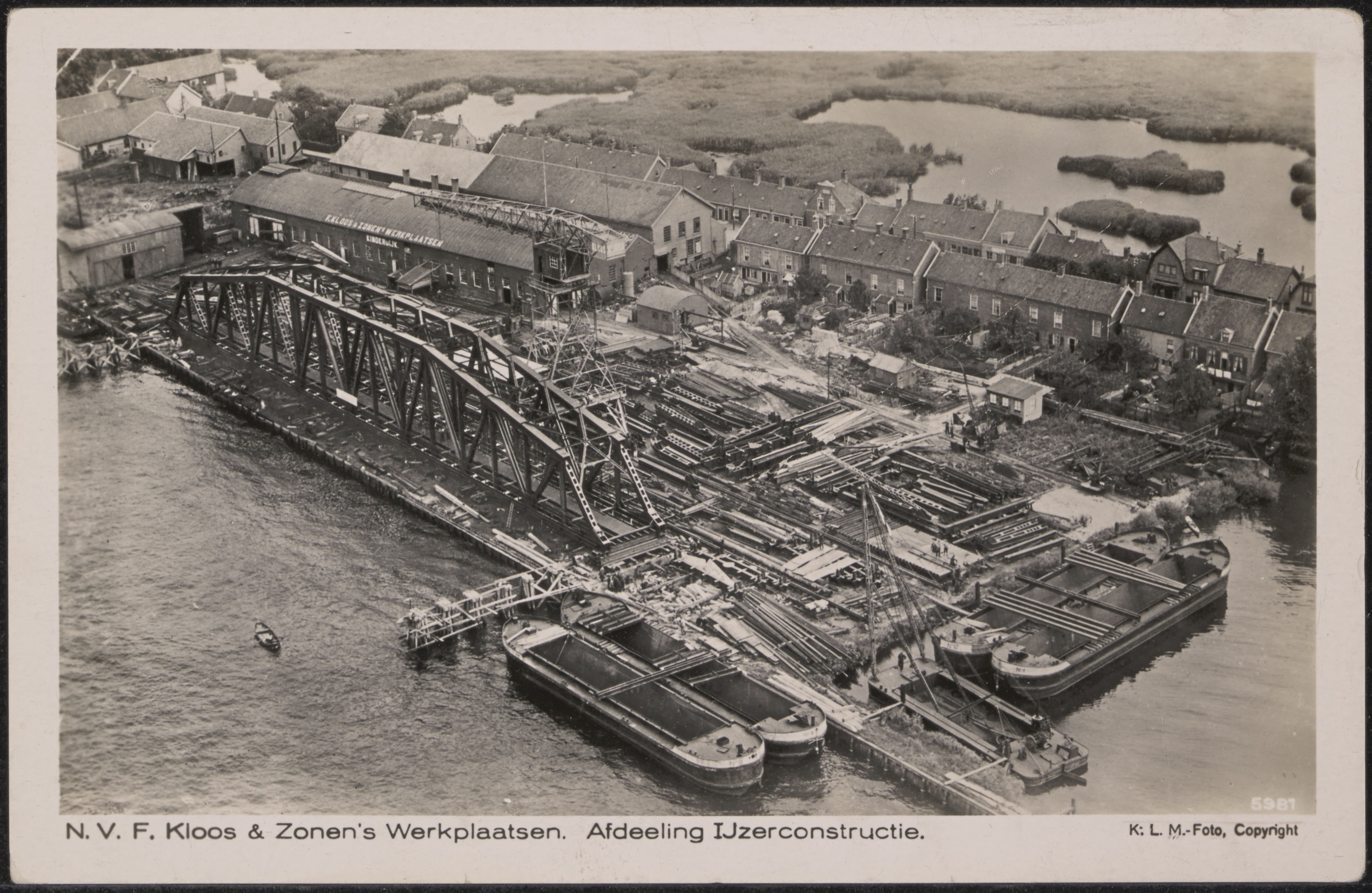 - Luchtfoto Fa. Kloos en Zn. aan de Oost Kinderdijk in Alblasserdam.