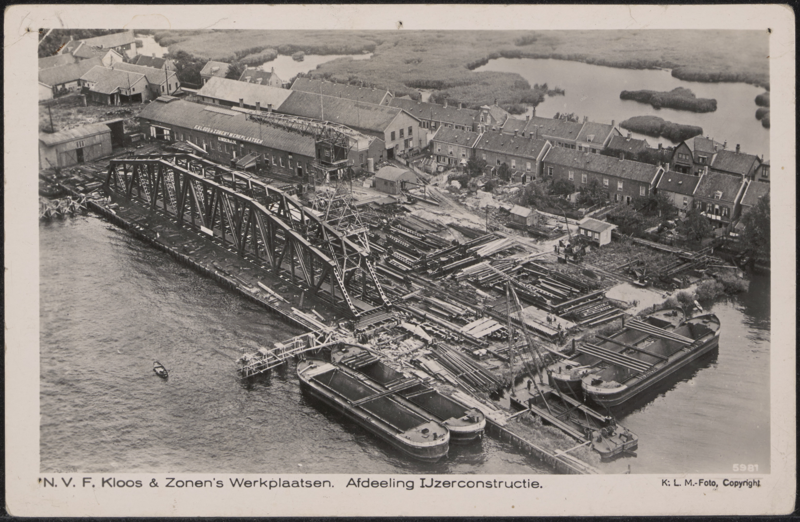 - Luchtfoto Fa. Kloos en Zn. aan de Oost Kinderdijk in Alblasserdam.