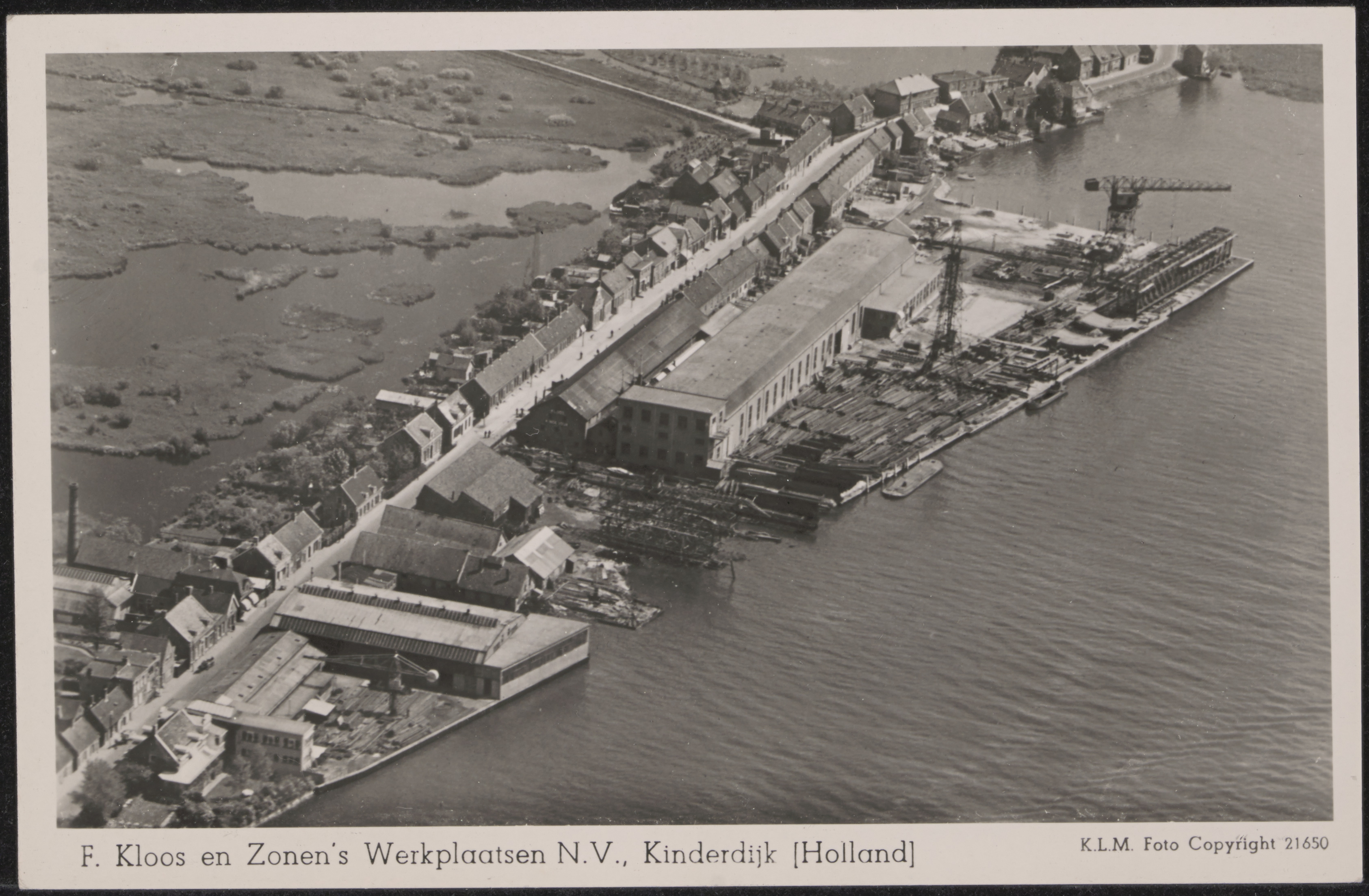 Luchtfoto Fa. Kloos en Zn. aan de Oost Kinderdijk in Alblasserdam.