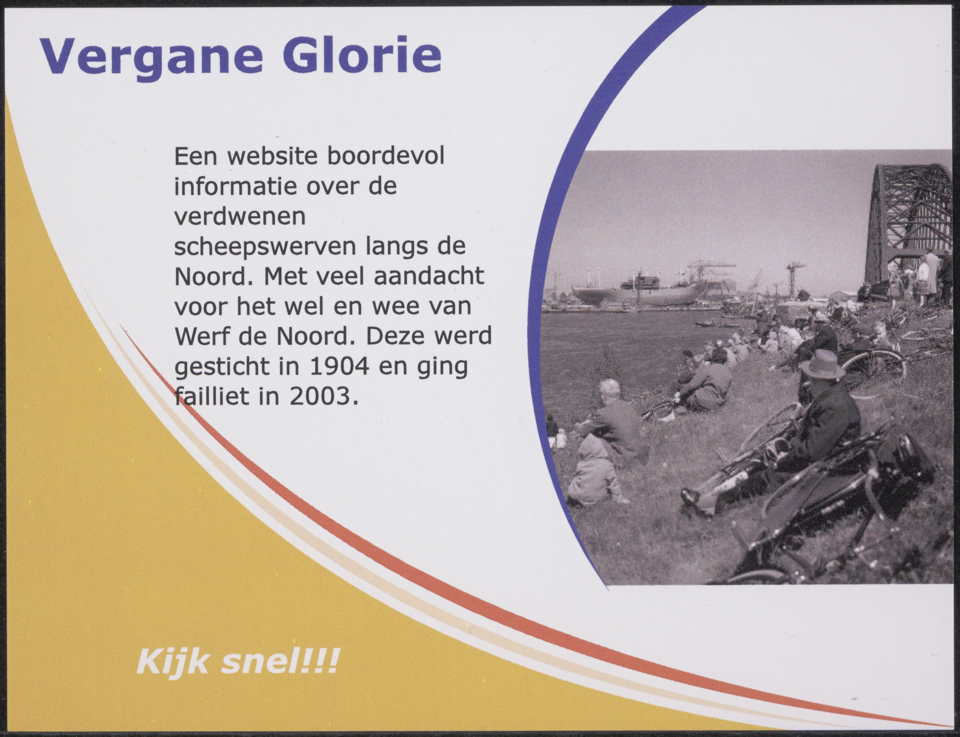 Aandacht voor de website van scheepswerf De Noord. Rechts de Brug over de Noord, gezien …