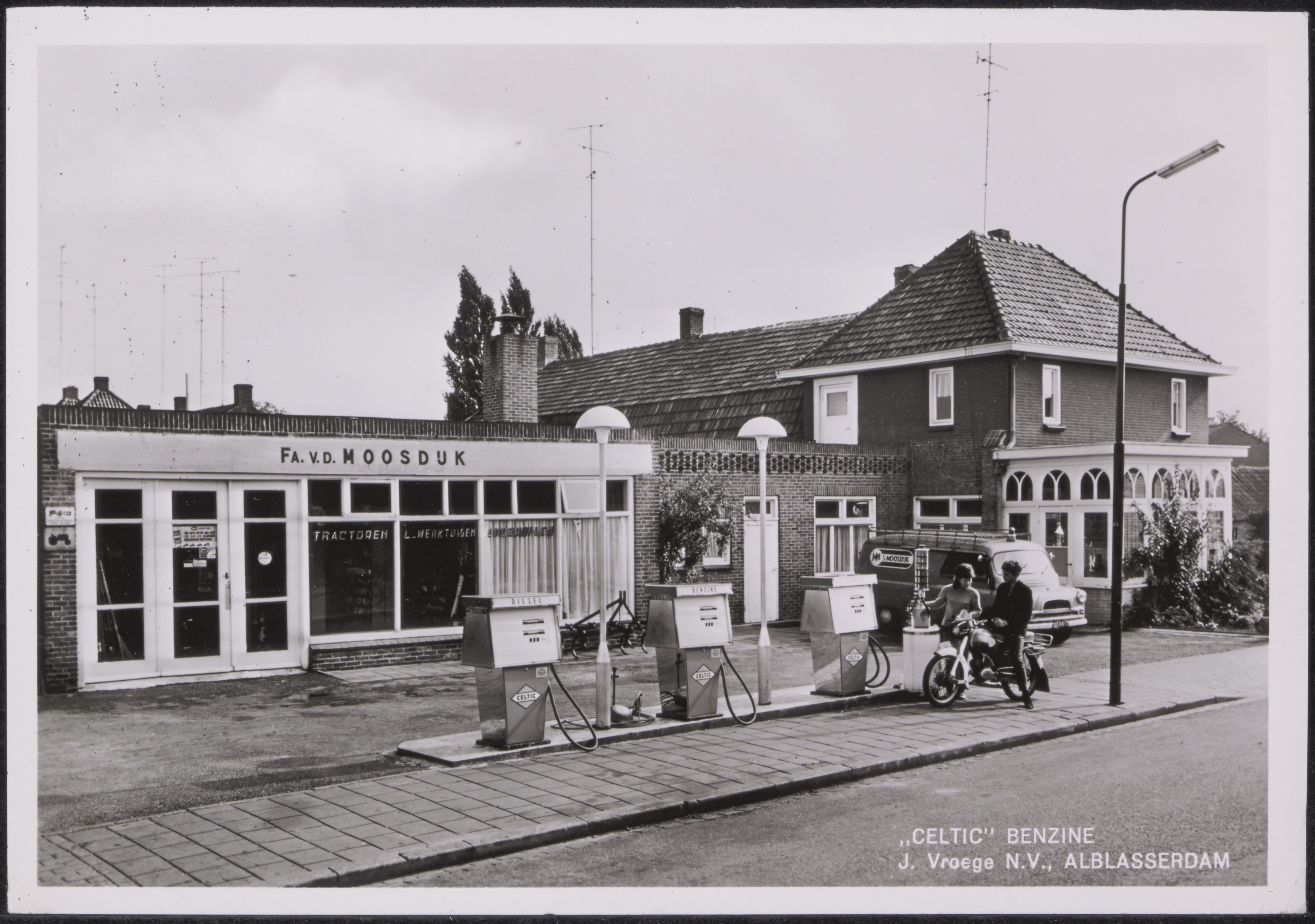 De tekst op de foto geeft alleen aan dat het een Celtic tankstation van Jan Vroege is uit Alblasserdam. De naam Moosdijk in combinatie met tractoren, landbouwwerktuigen en onderdelen laten mij in Oirschot landen, maar dat is het dan ook wel ...