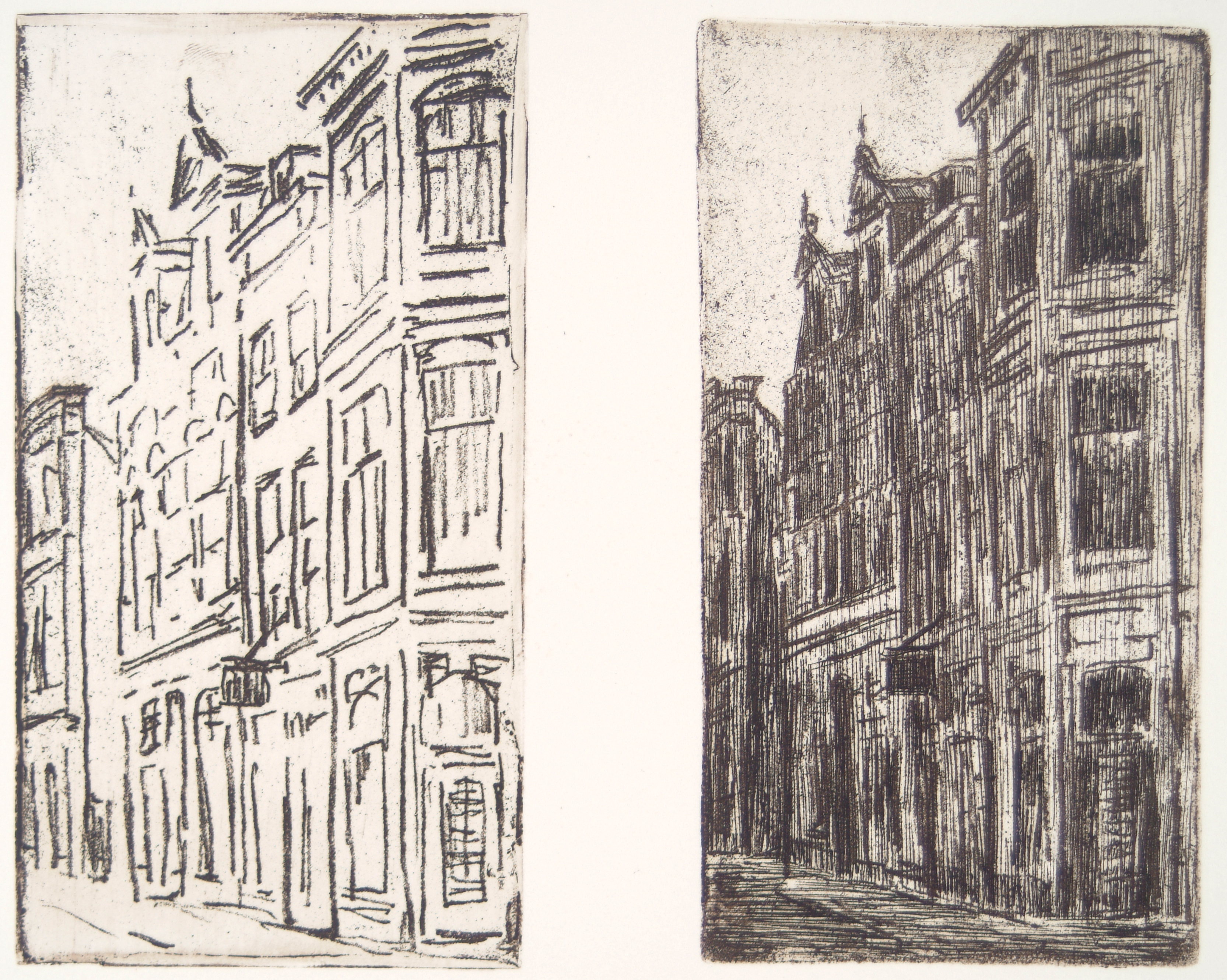 - Twee voorstellingen van Voorstraat 128 op de hoek van de Mariënbornstraat met kunsthandel De Rode Deur en belendingen.