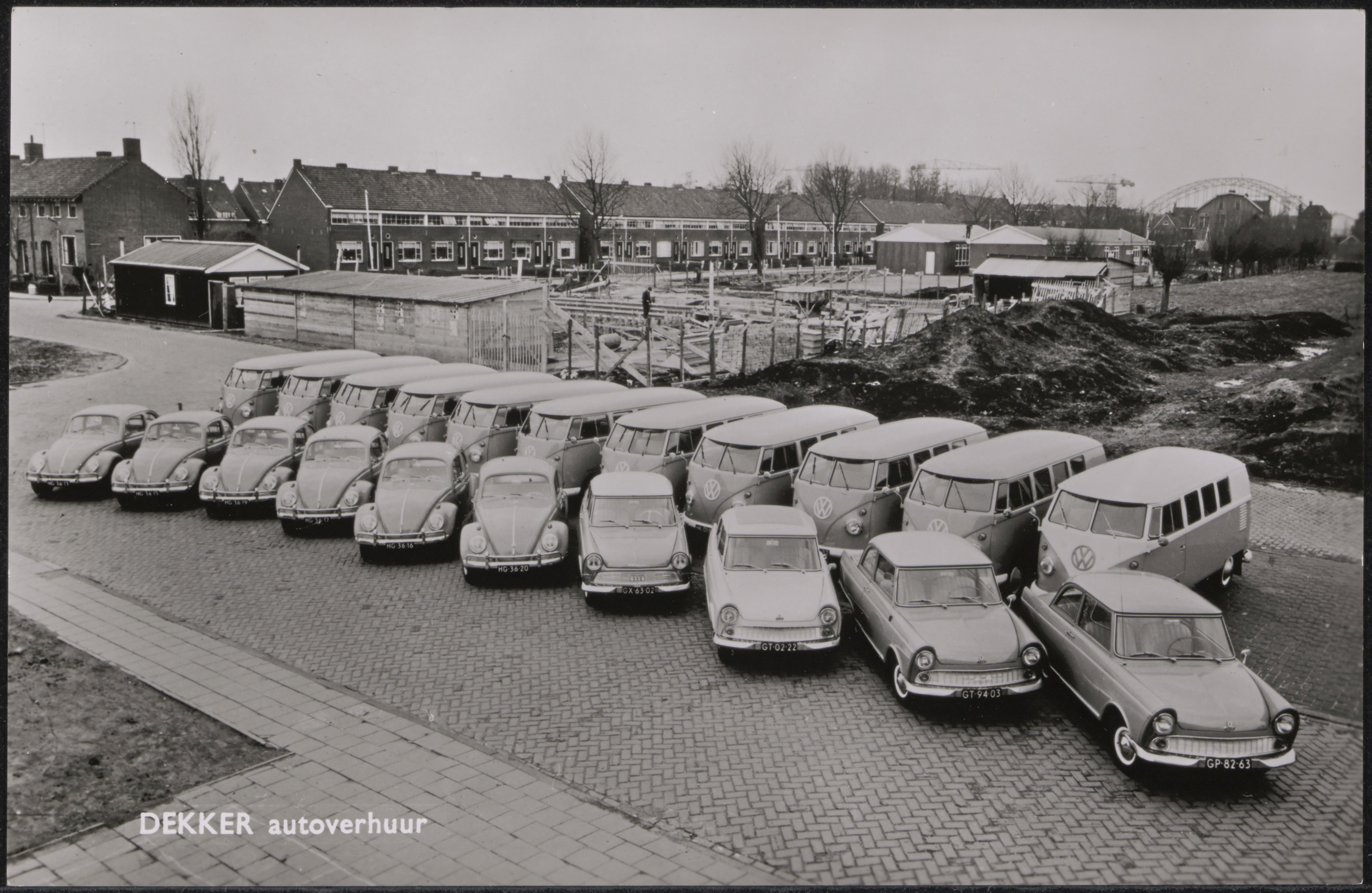 Opstelling van autoverhuurbedrijf Dekker bij het in aanbouw zijnde postkantoor op de …