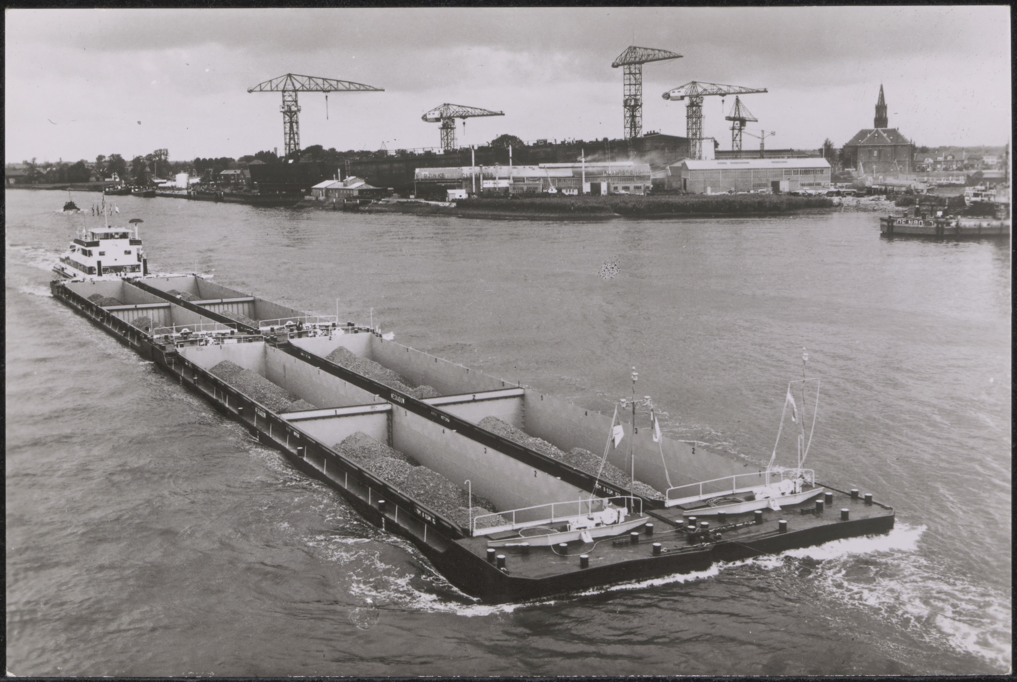 Duwbak op de Noord t.h.v. de Oude Werf en de Grote Kerk in Alblasserdam.