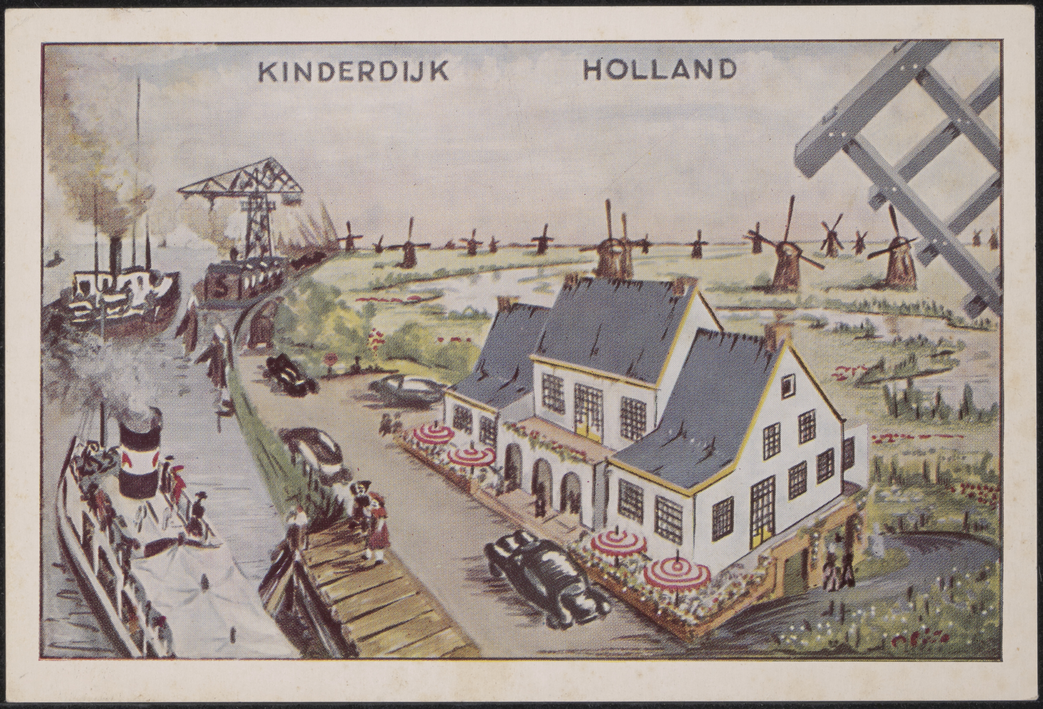 Reclamekaart van hotel-restaurant Kinderdijk aan de West Kinderdijk in Alblasserdam.