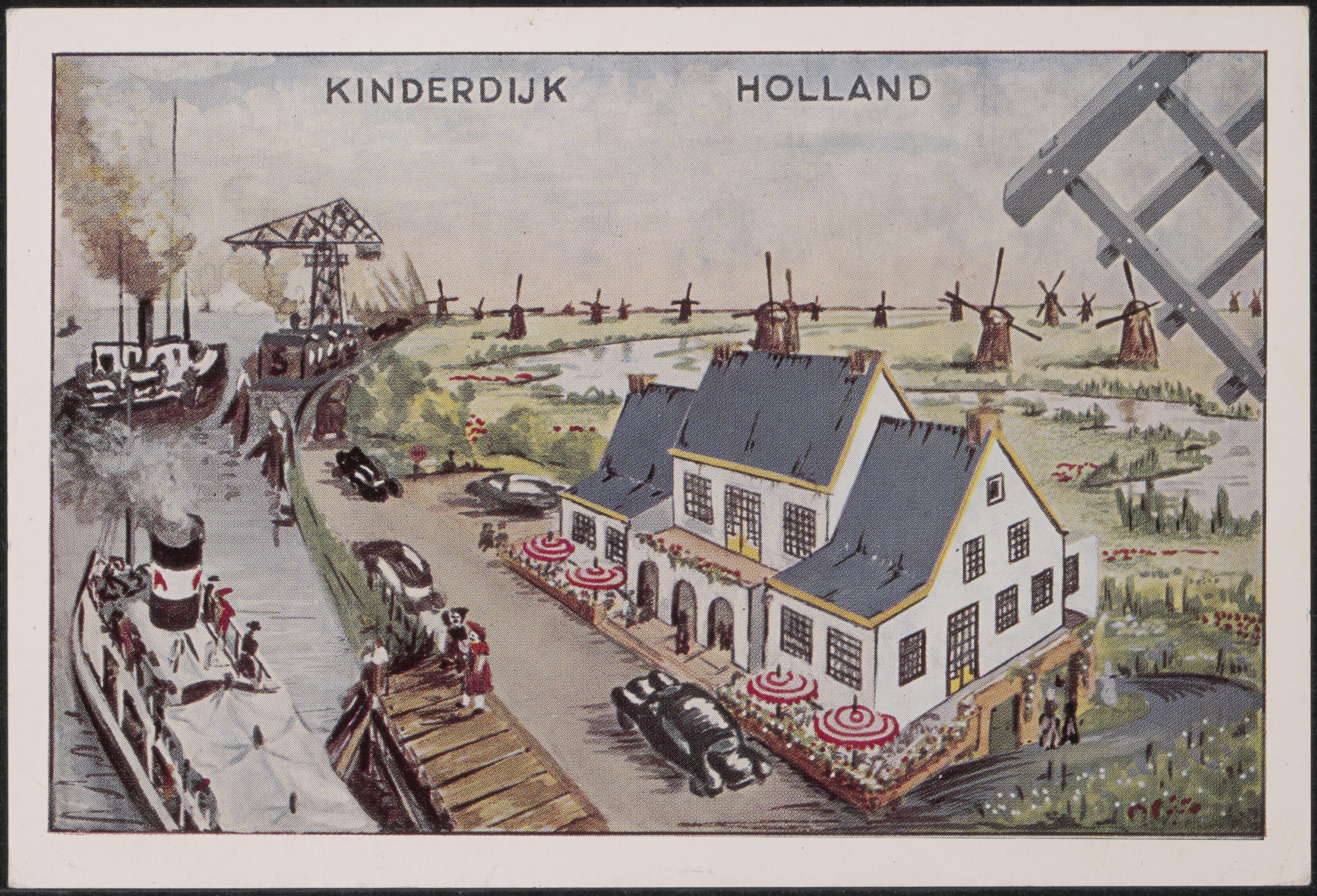 - Reclamekaart van hotel-restaurant Kinderdijk aan de West Kinderdijk in Alblasserdam.