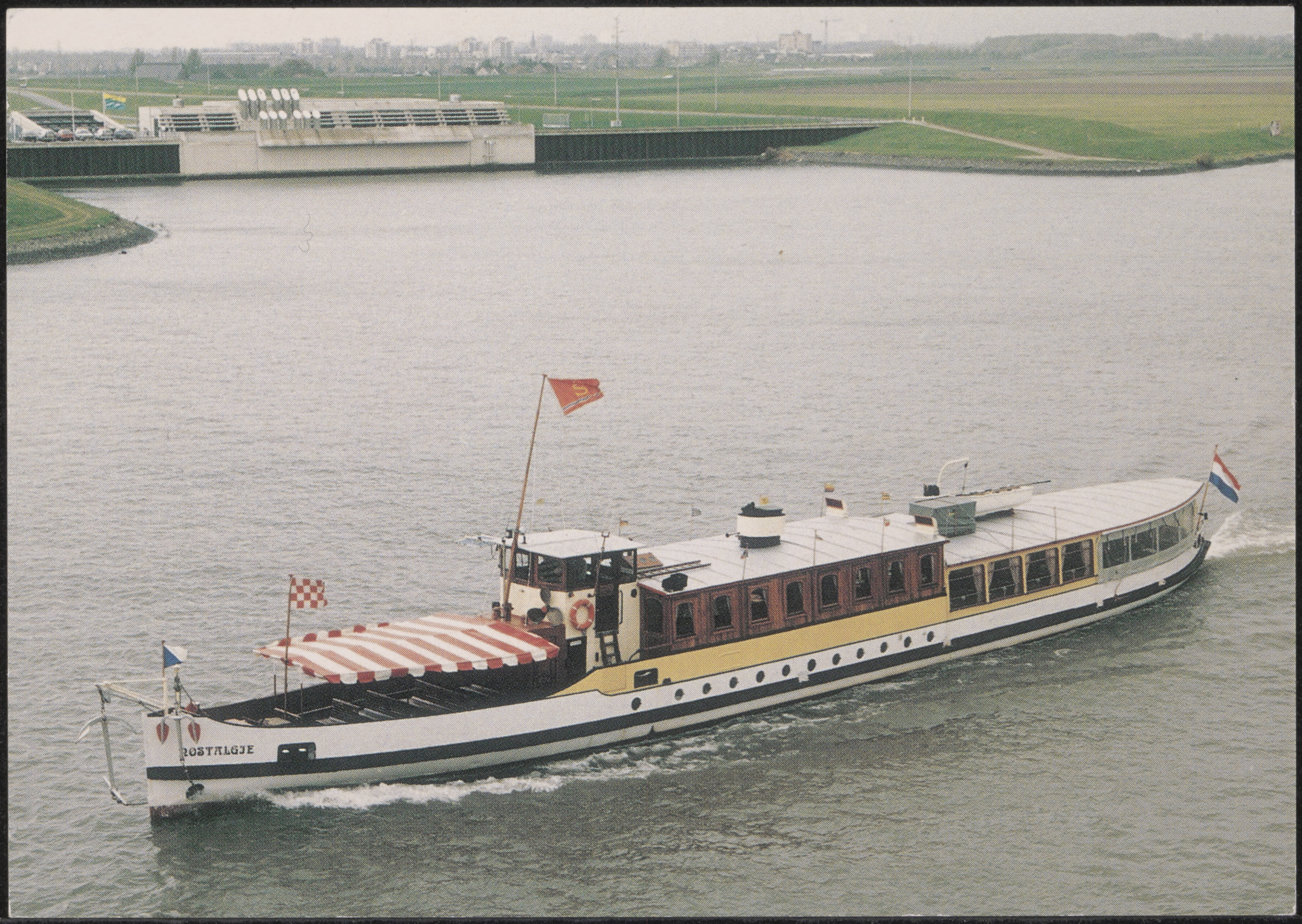 - Salonboot Nostalgie op de Noord bij de Noordtunnel. Ridderkerk op de achtergrond.