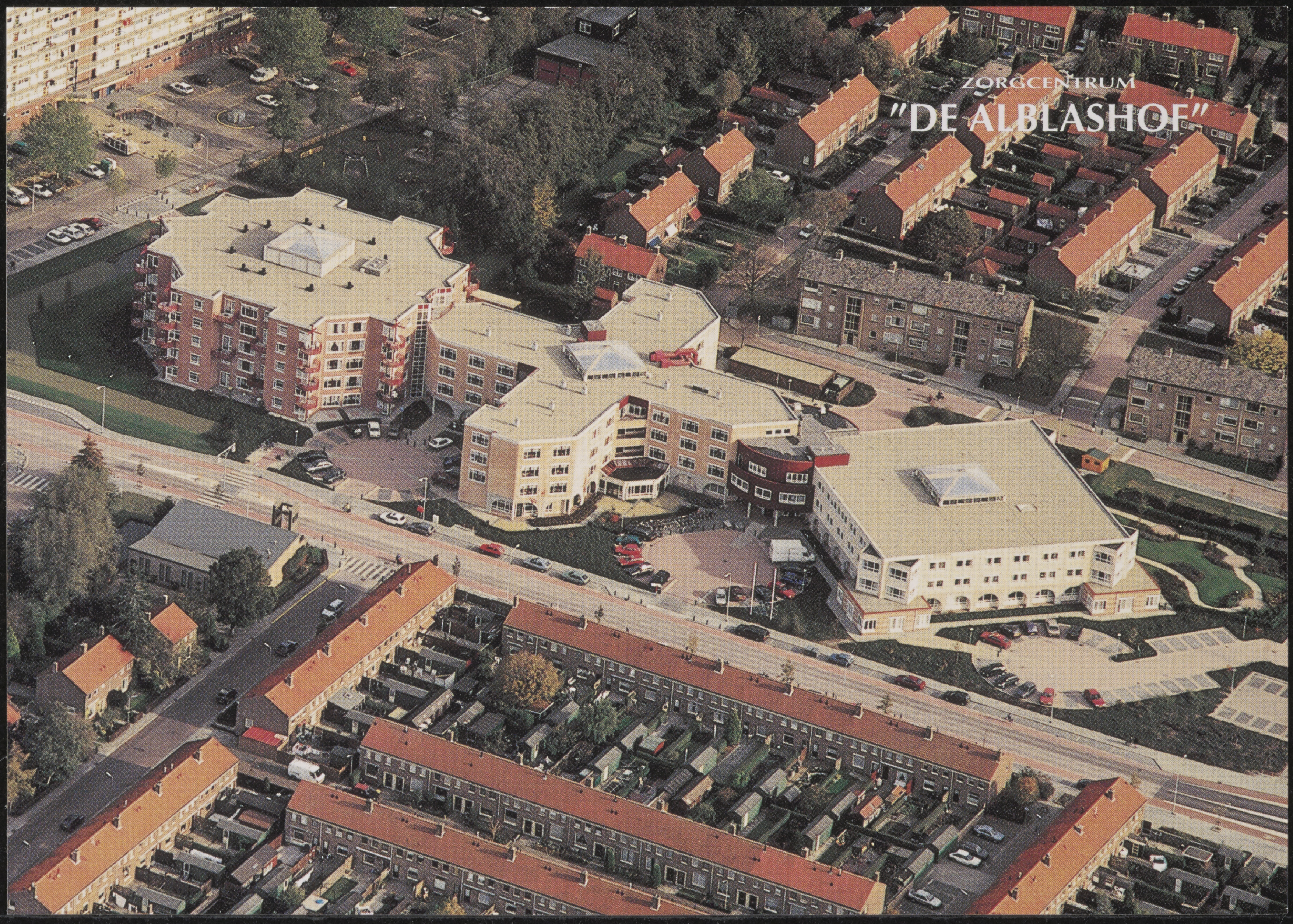 Luchtfoto van verpleeghuis De Alblashof langs de Plantageweg in Alblasserdam.