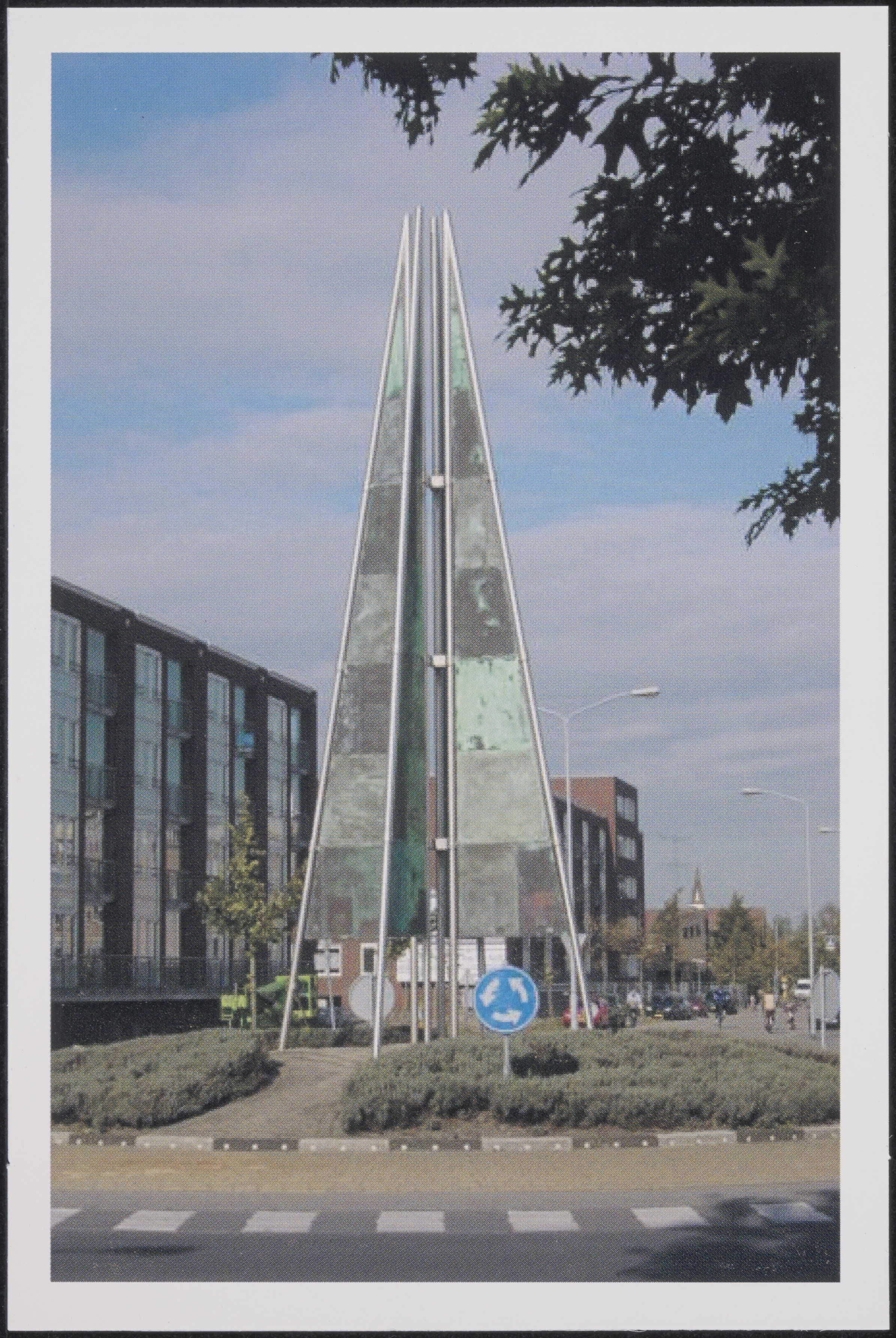 Kunstwerk op de rotonde van de Plantageweg / Randweg (voorgrond) in Alblasserdam.