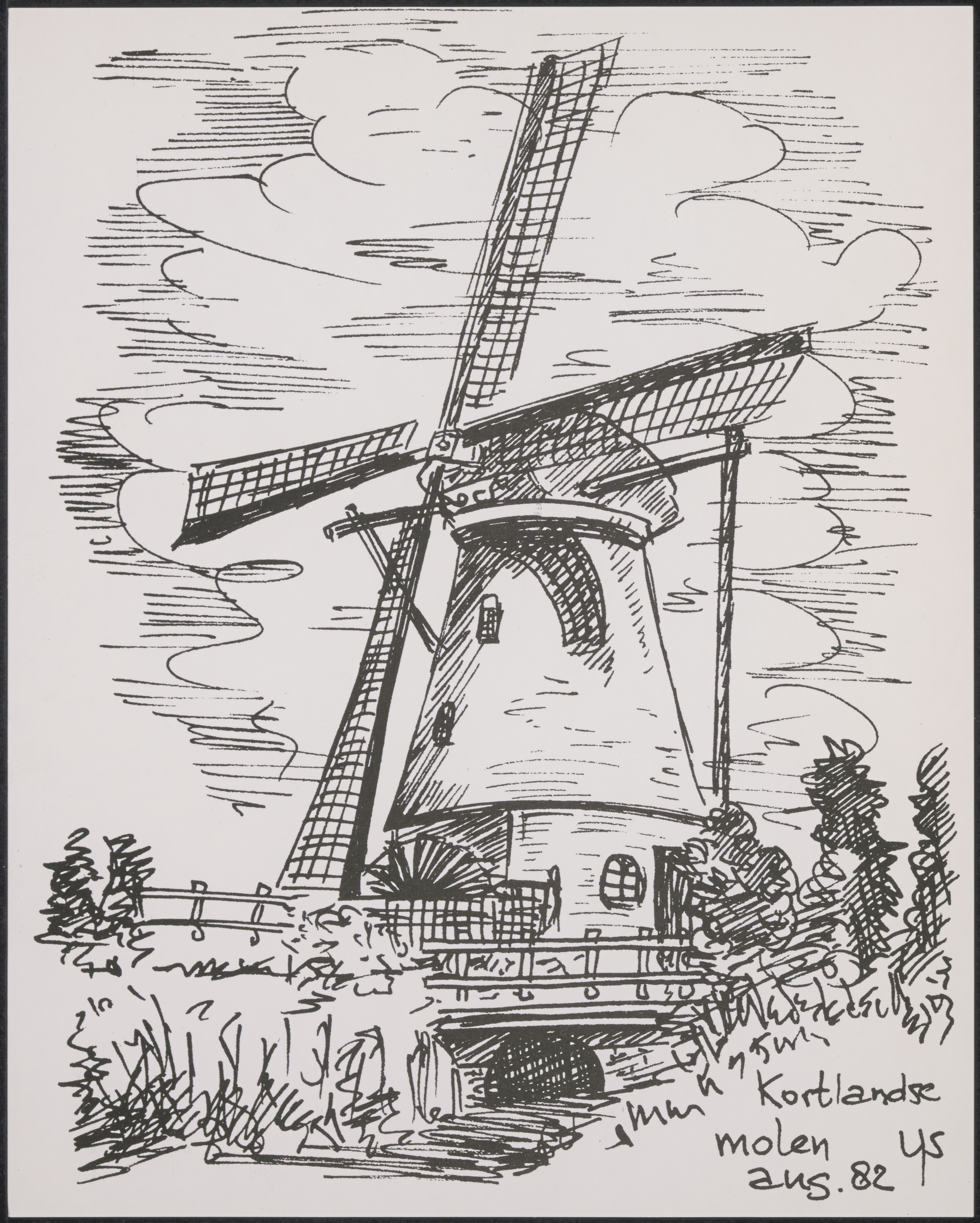 - Tekening van de Kortlandse molen aan het Kortland in Alblasserdam.