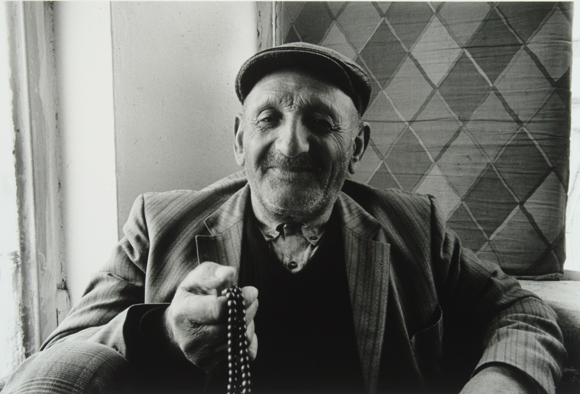 Dorpsoudste in ontmoetingsruimte naast moskee, Kayapinar